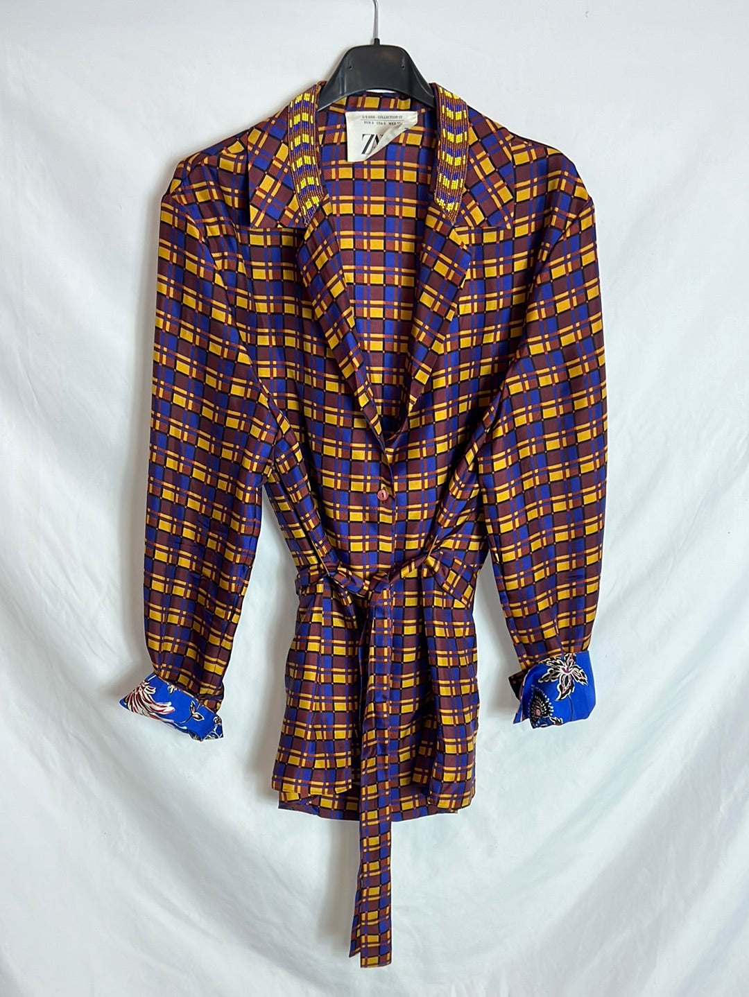 Satin and printed blouse. Length 75 cm.