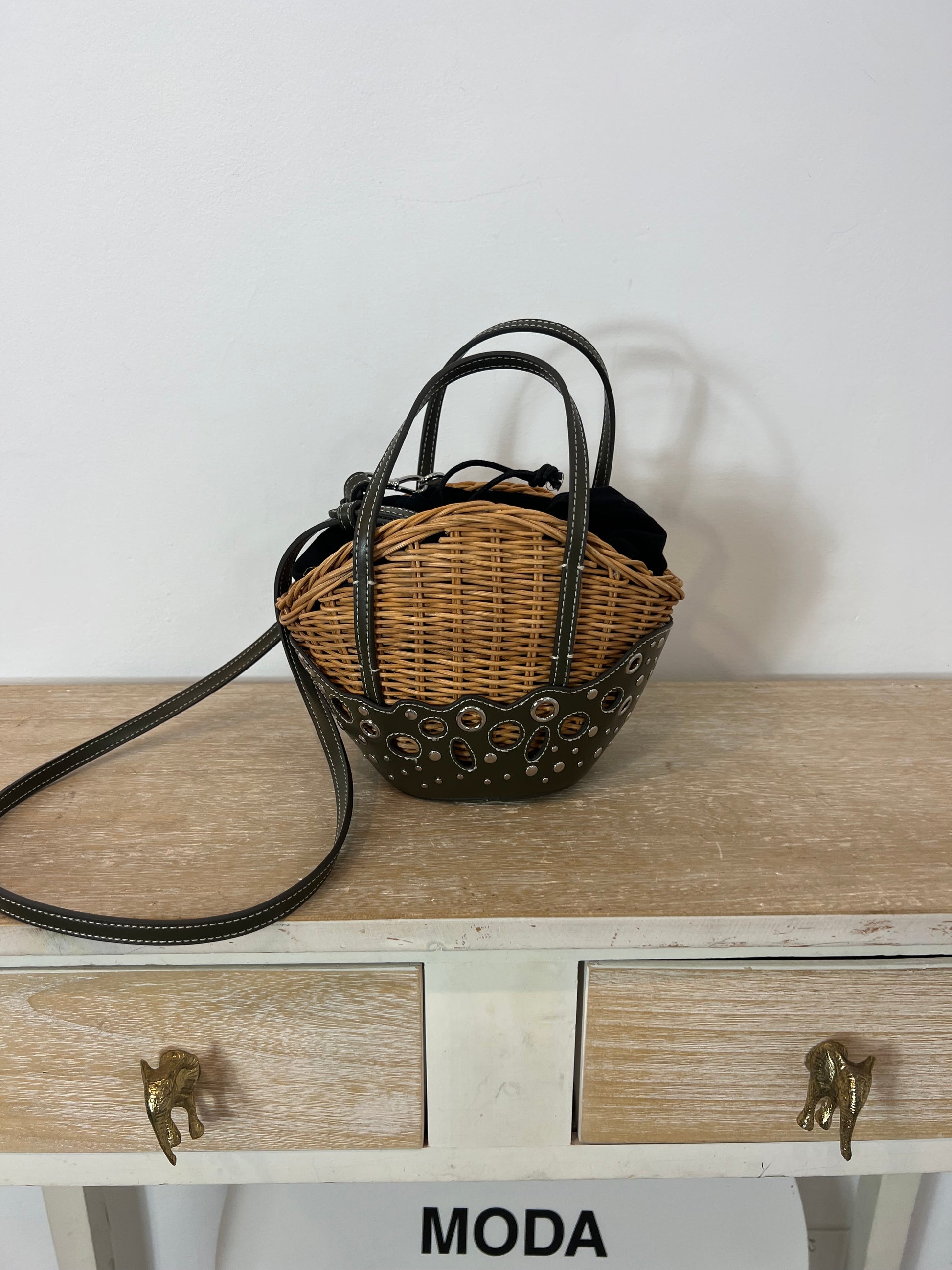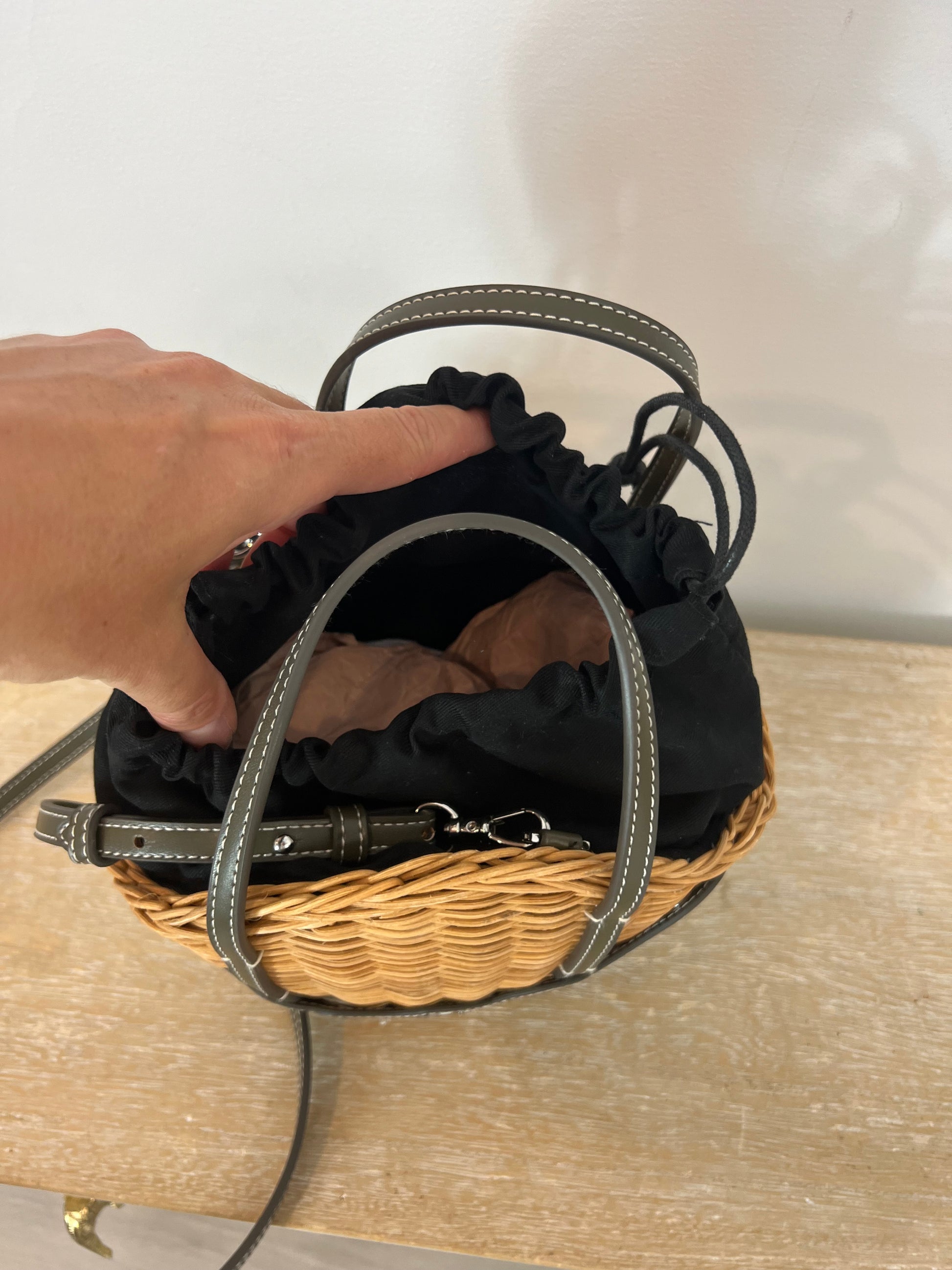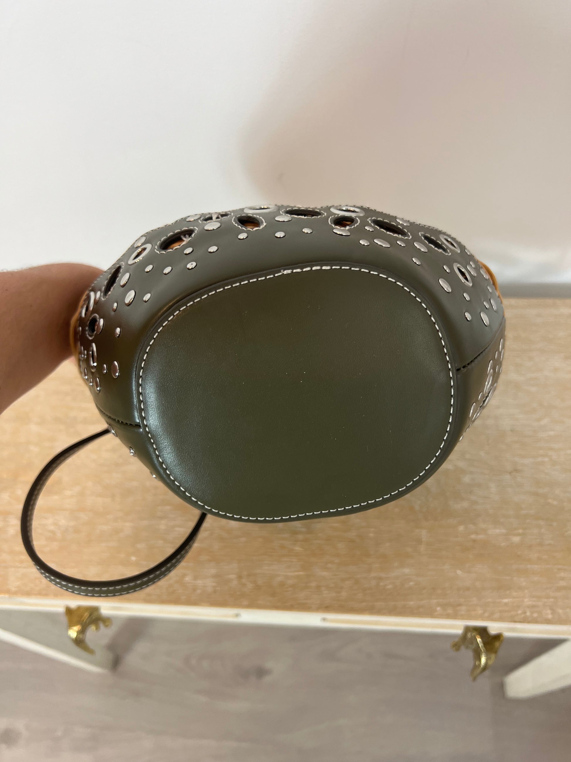 NUEVO SIN USO. bolso redondo semi rígido beige