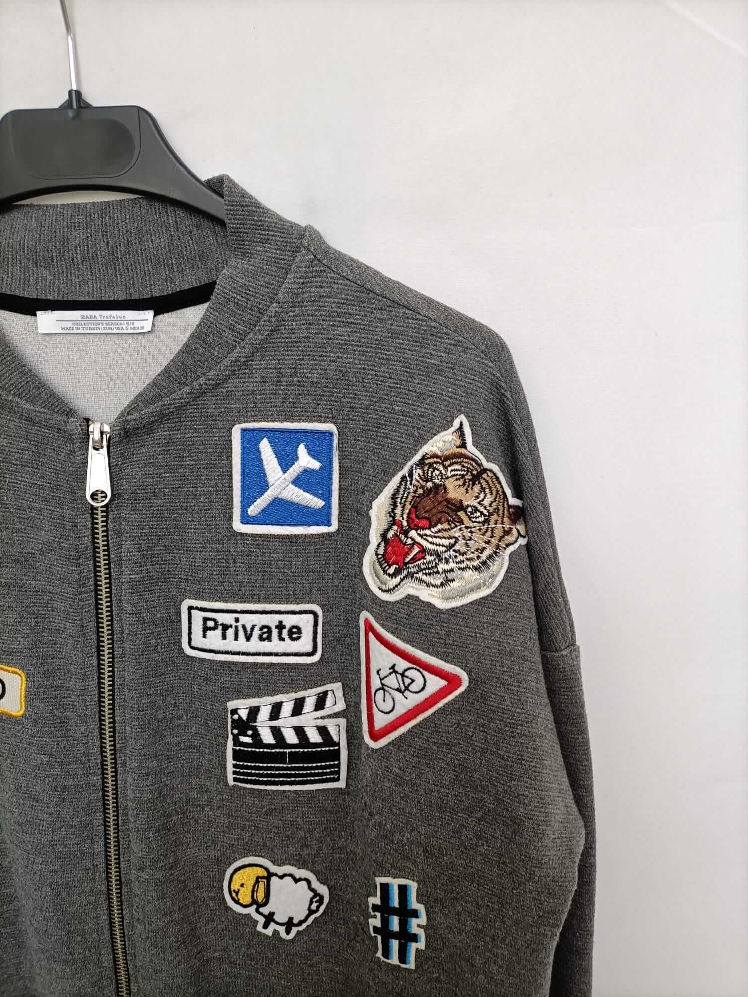 ZARA. Grey bomber jacket with Ts patches