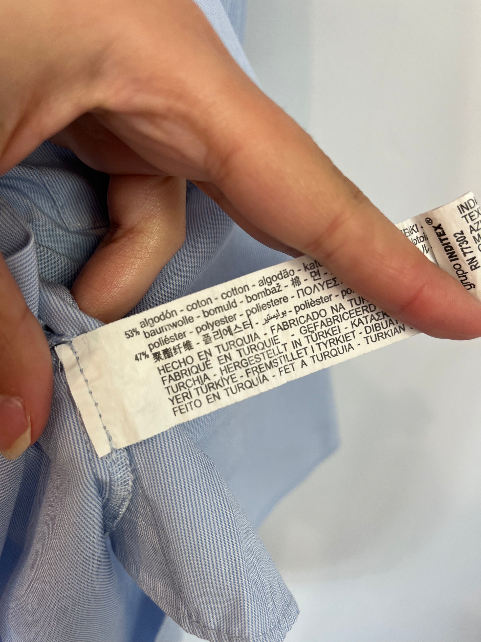 ZARA. Camisa azul bolsillos. T S