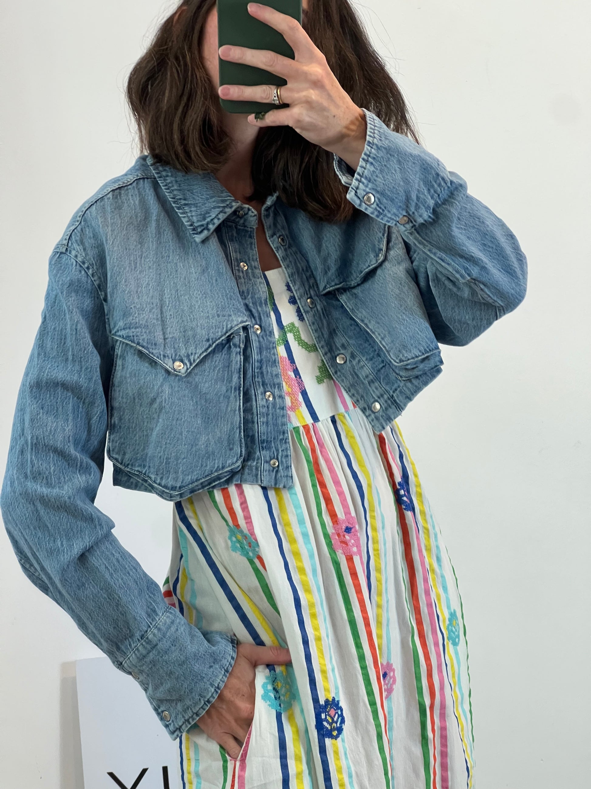 ZARA. Camisa denim crop. T XS