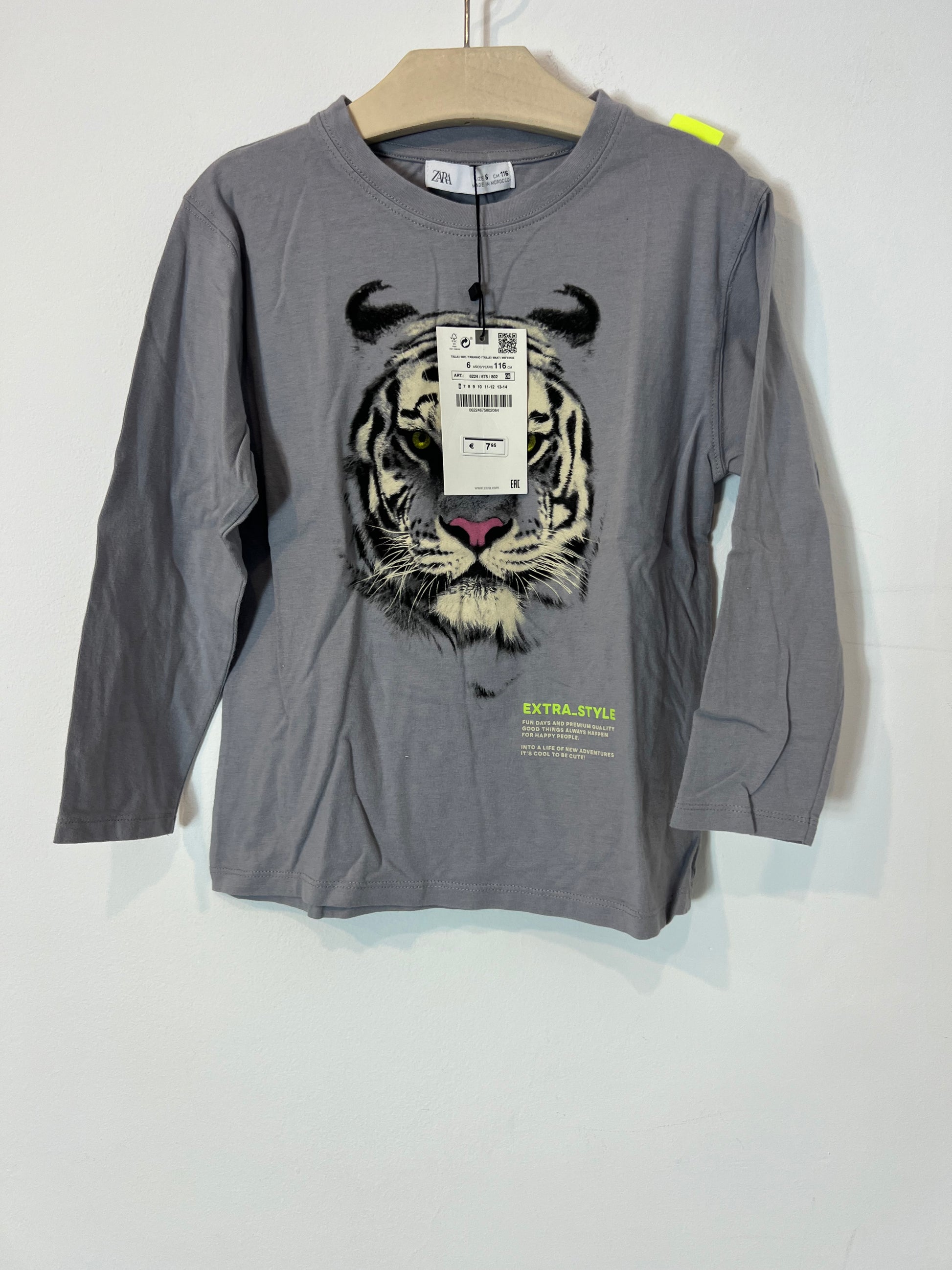 ZARA. Tiger gray T-shirt. Size 6 years