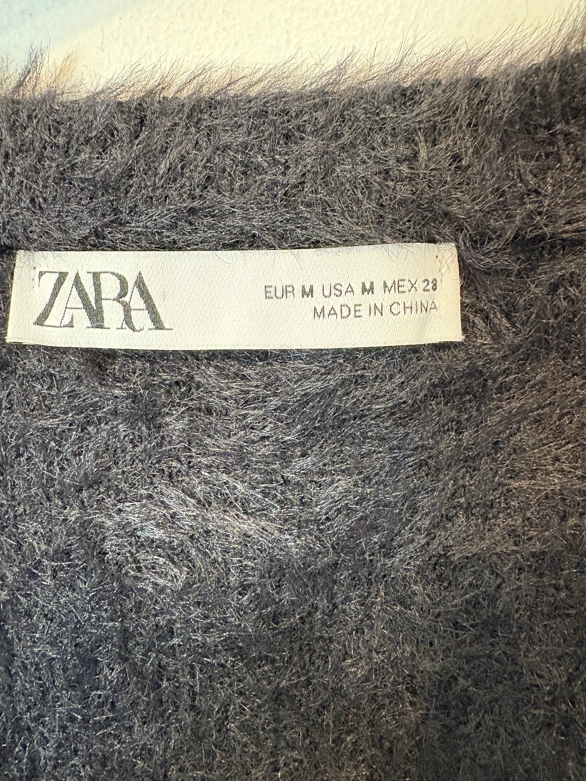ZARA. Chaqueta punto efecto pelo botón joya