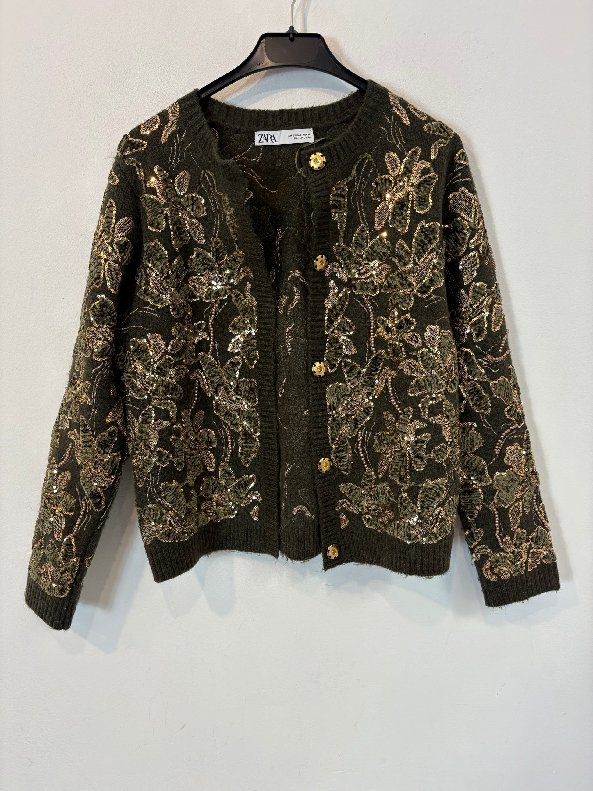 ZARA. Chaqueta punto verde lentejuelas