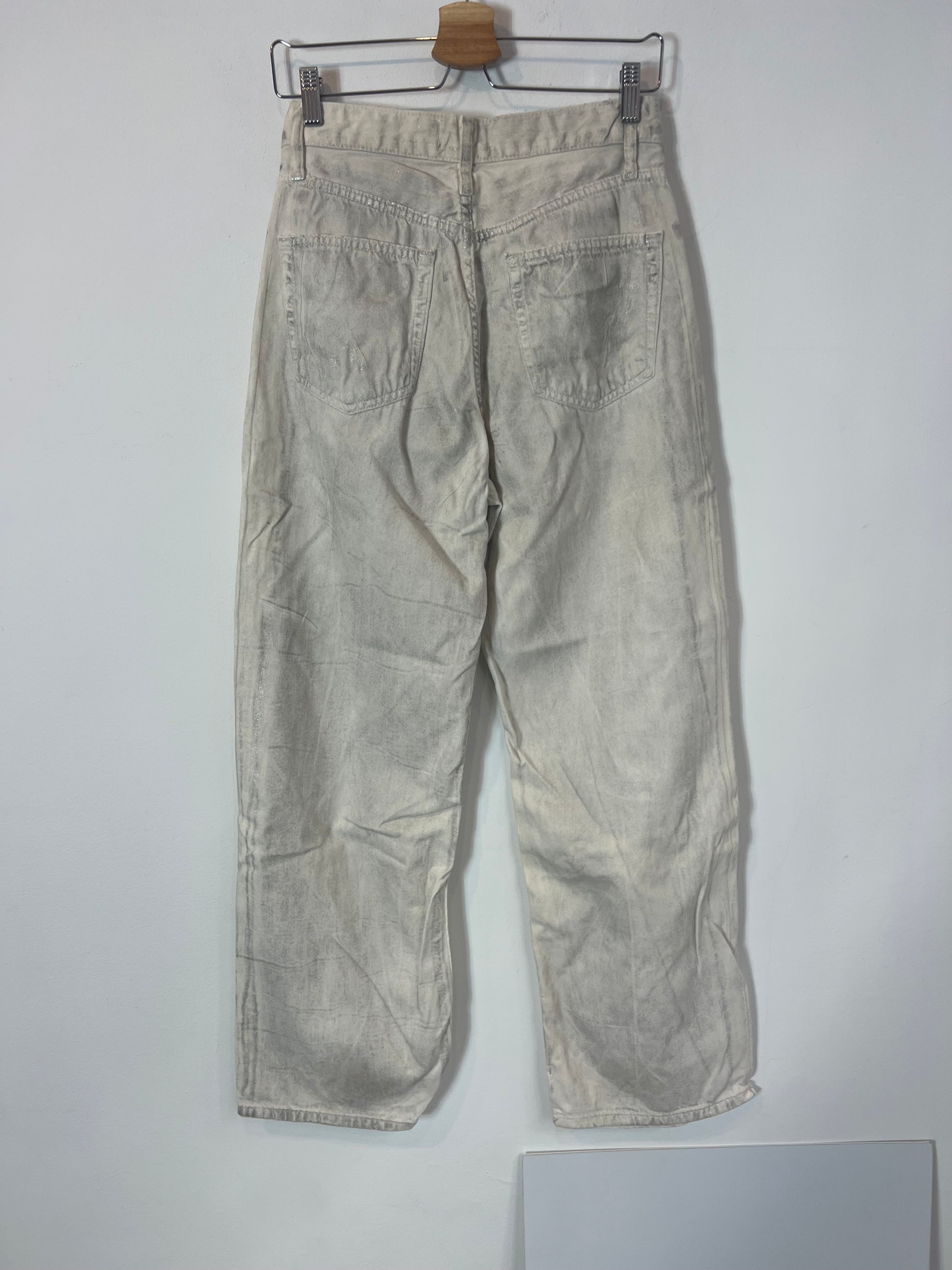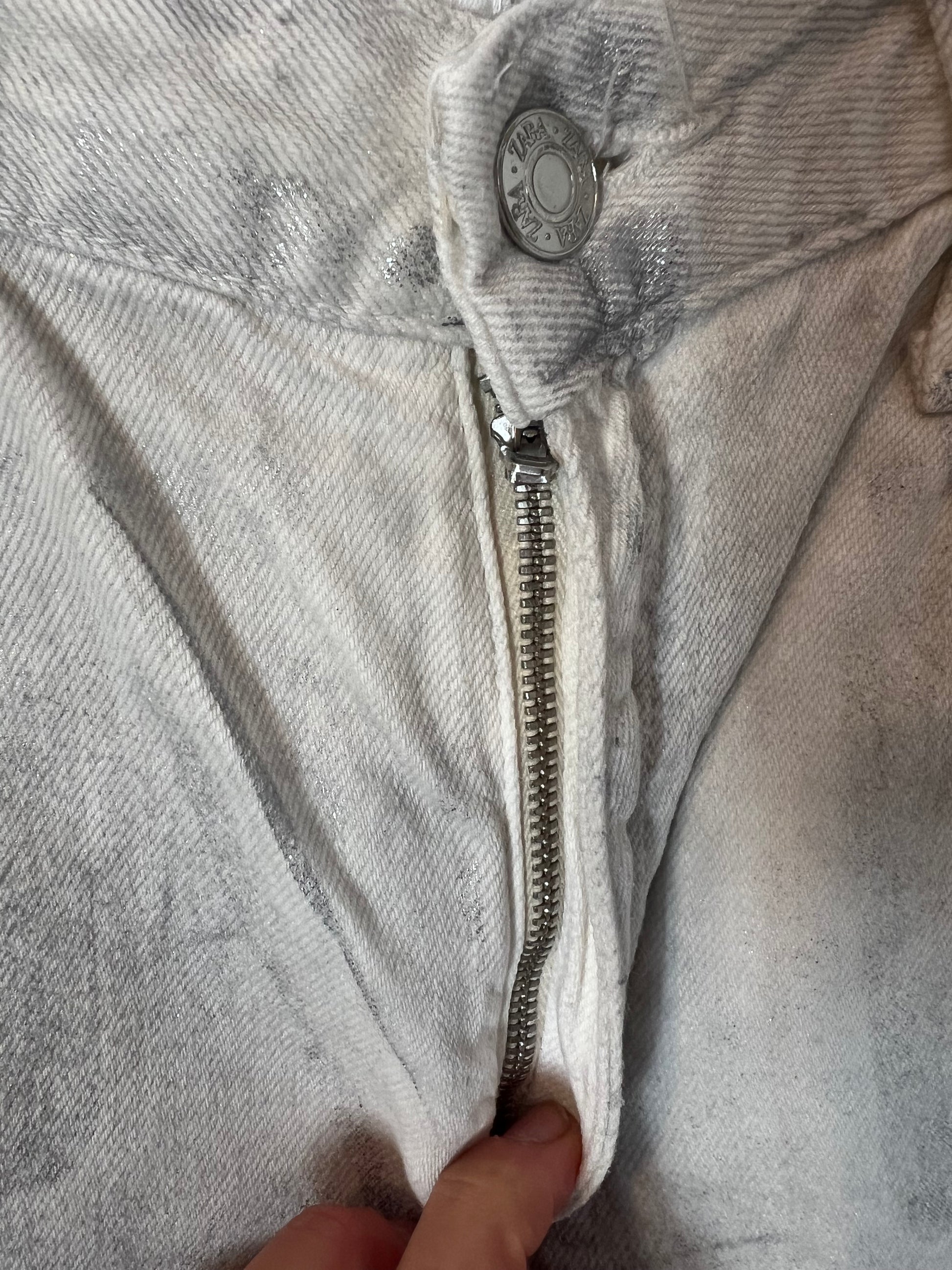 Denim blanco y gris claro purpurina. Cintura 35 cm, largo 106 cm. no elástico