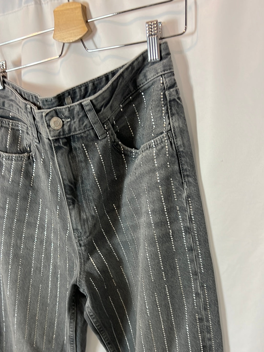 Gray denim wide leg mini non-elastic rhinestones. Waist 39cm, length 109cm