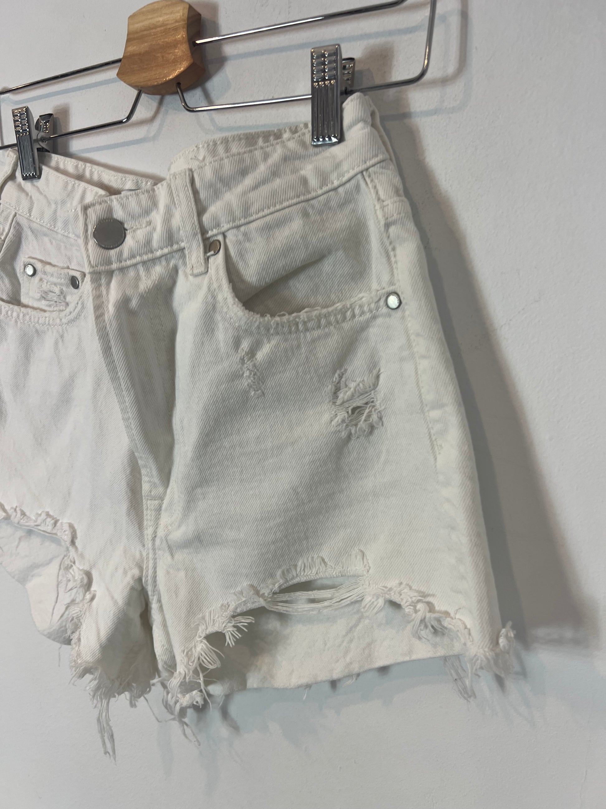 Denim short blanco flecos. Cintura 35 cm, largo 31 cm. no elástico