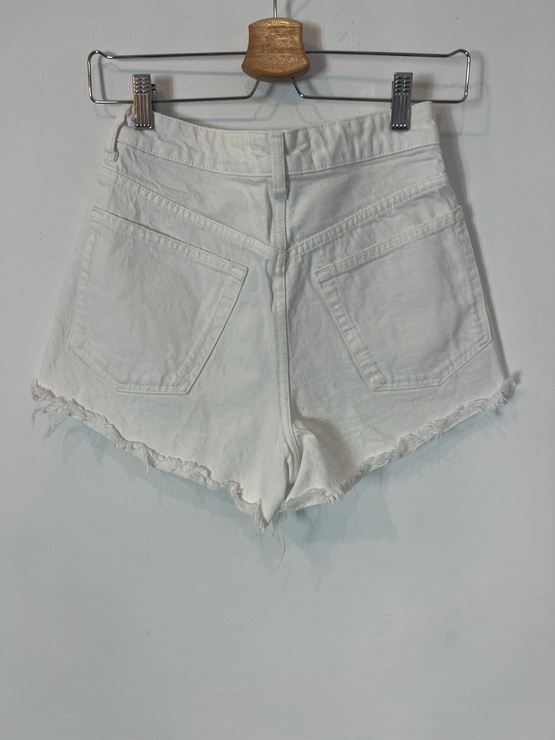 ZARA. Denim short blanco flecos. T 34