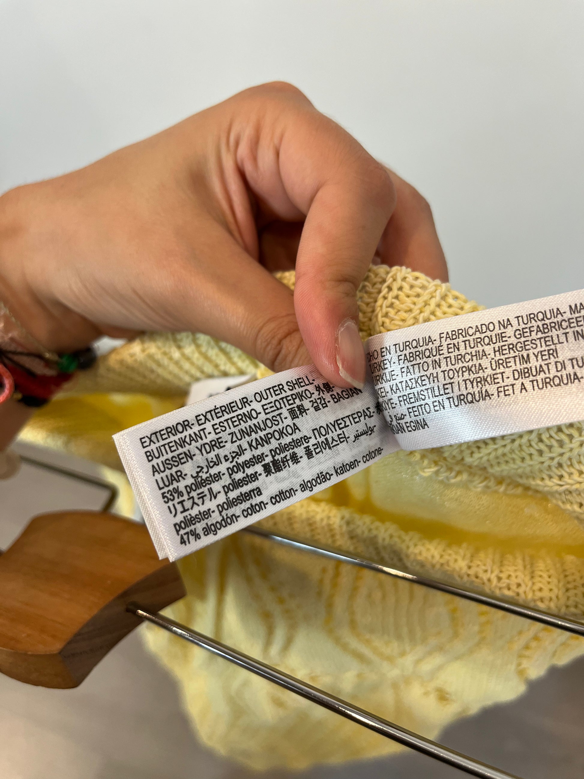 NEW WITH TAG. Semi-elastic in pastel yellow. Waist 36 cm, length 100 cm.