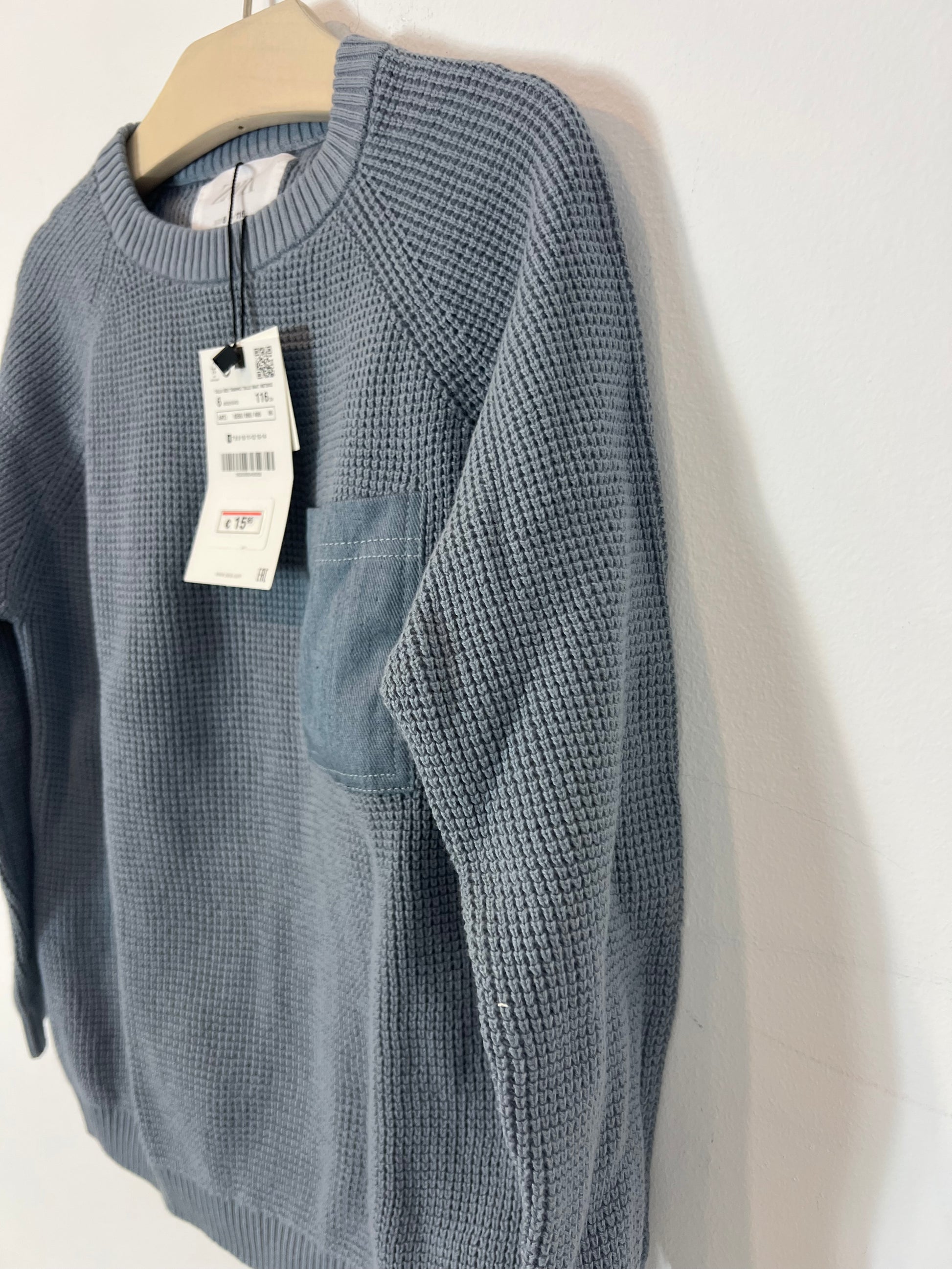 ZARA. Blue sweater with pocket detail. Size 6 years