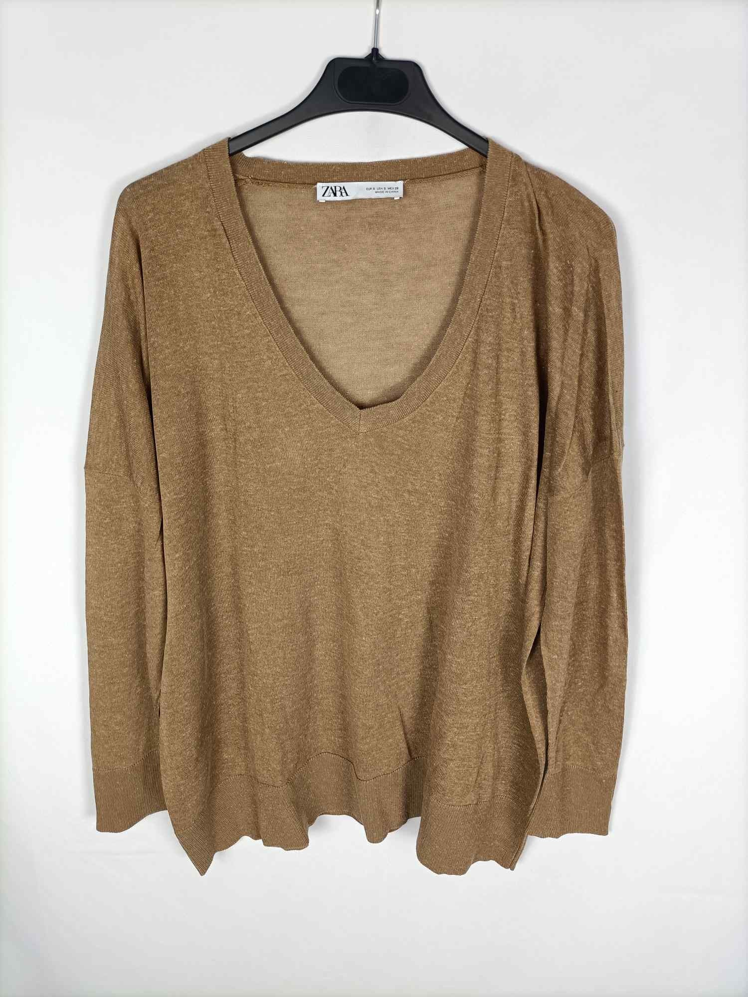 Zara. jersey finito Camel jaspeado estilo oversized. Largo 69 cm