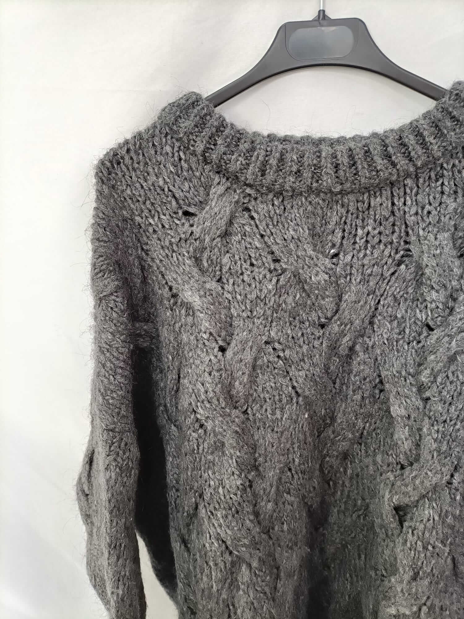 Zara. M. Oversized charcoal gray cable-knit sweater. Elastic. Length 75 cm.