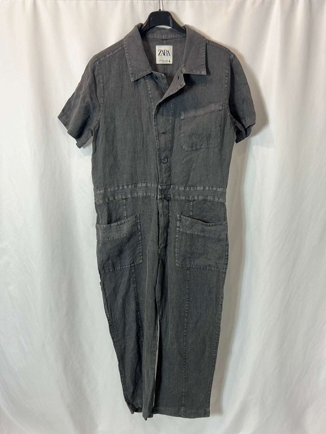 Blue distressed jumpsuit. Shoulders 43cm, waist 45cm, length 135cm