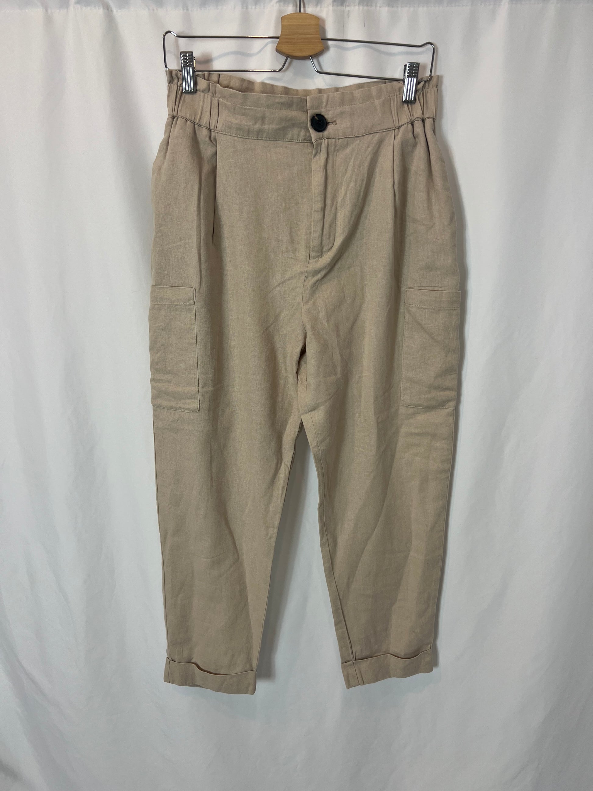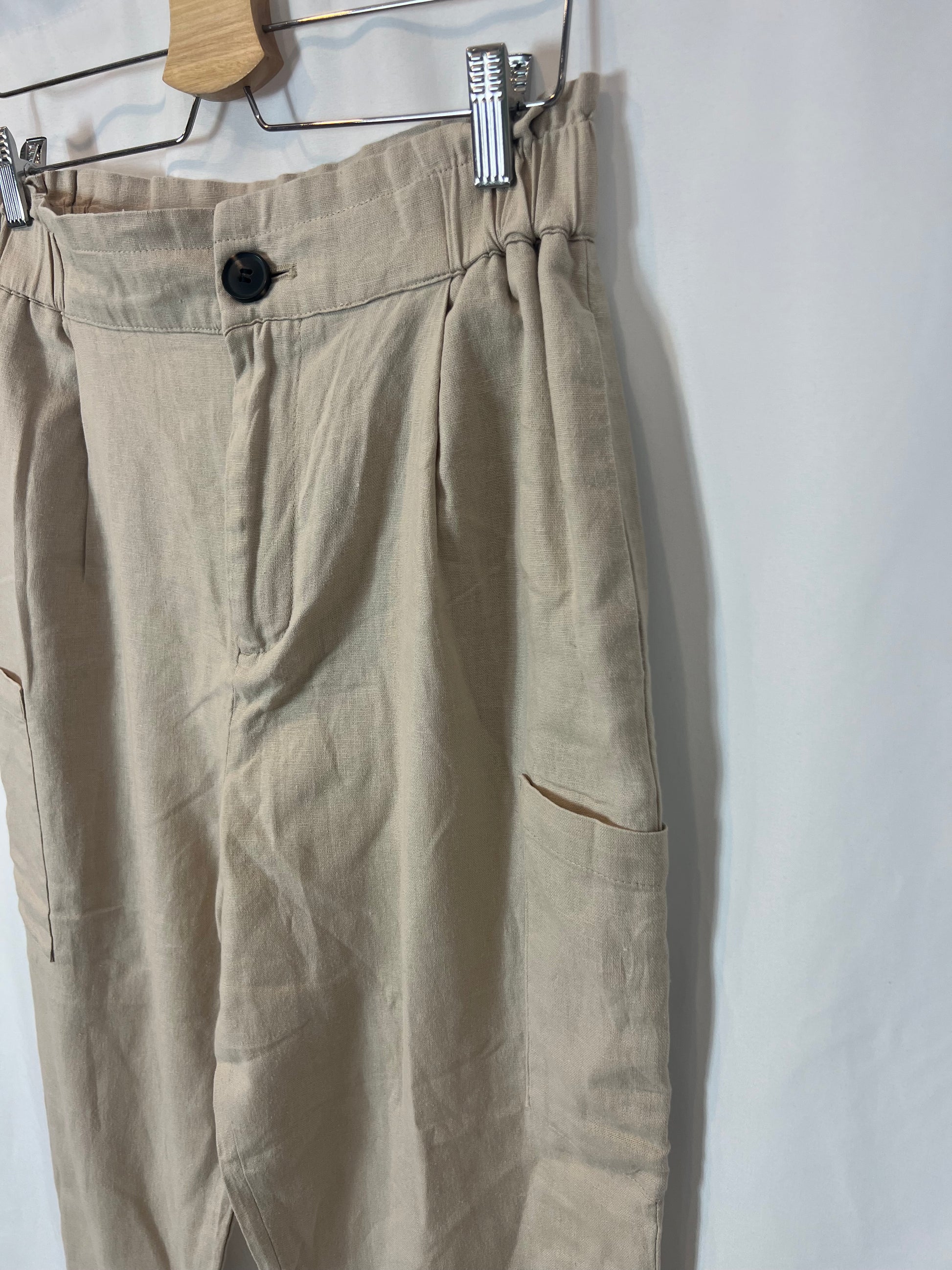 Beige trousers with pockets. Waist 37cm, length 96cm. Linen and viscose.