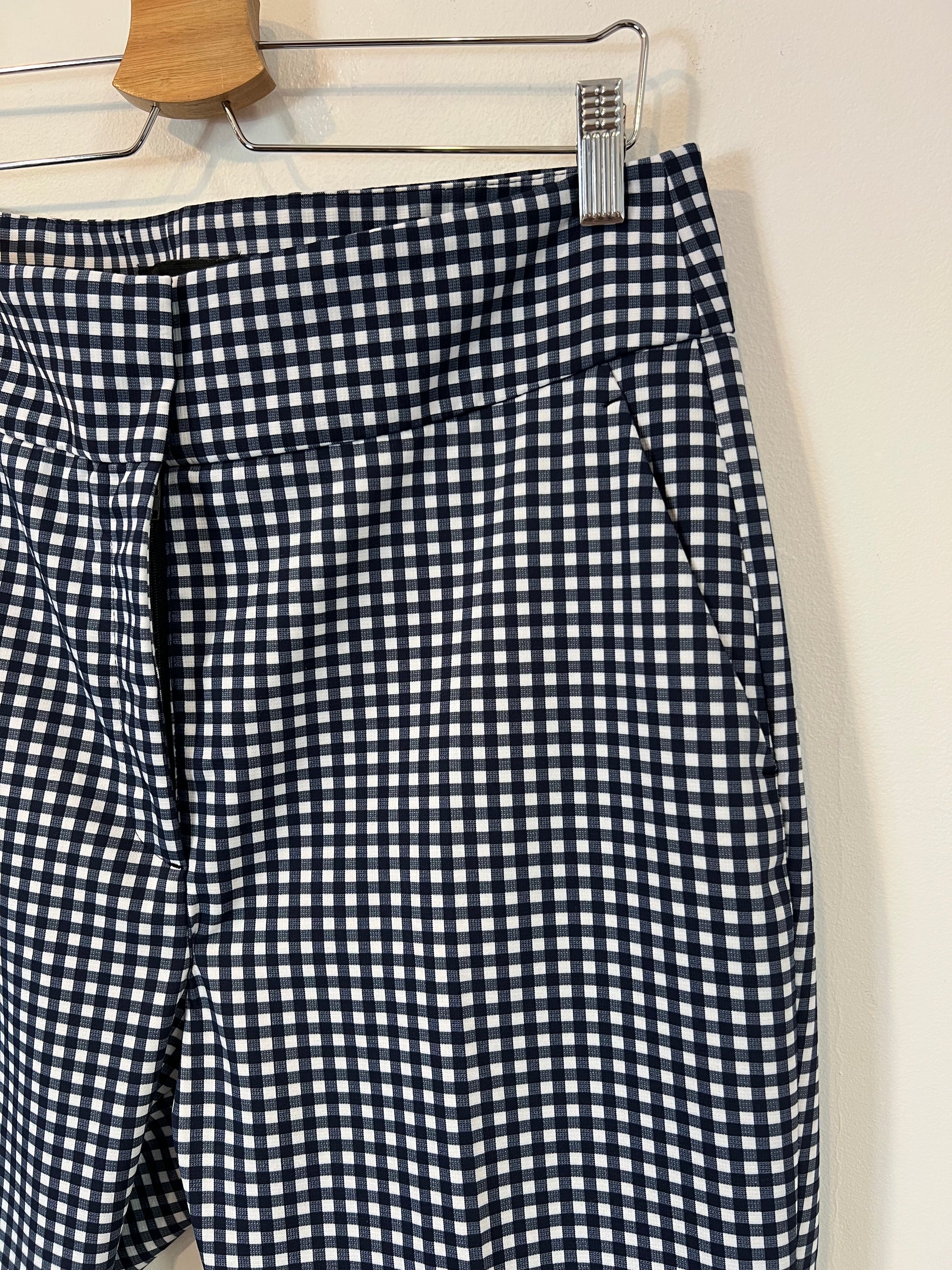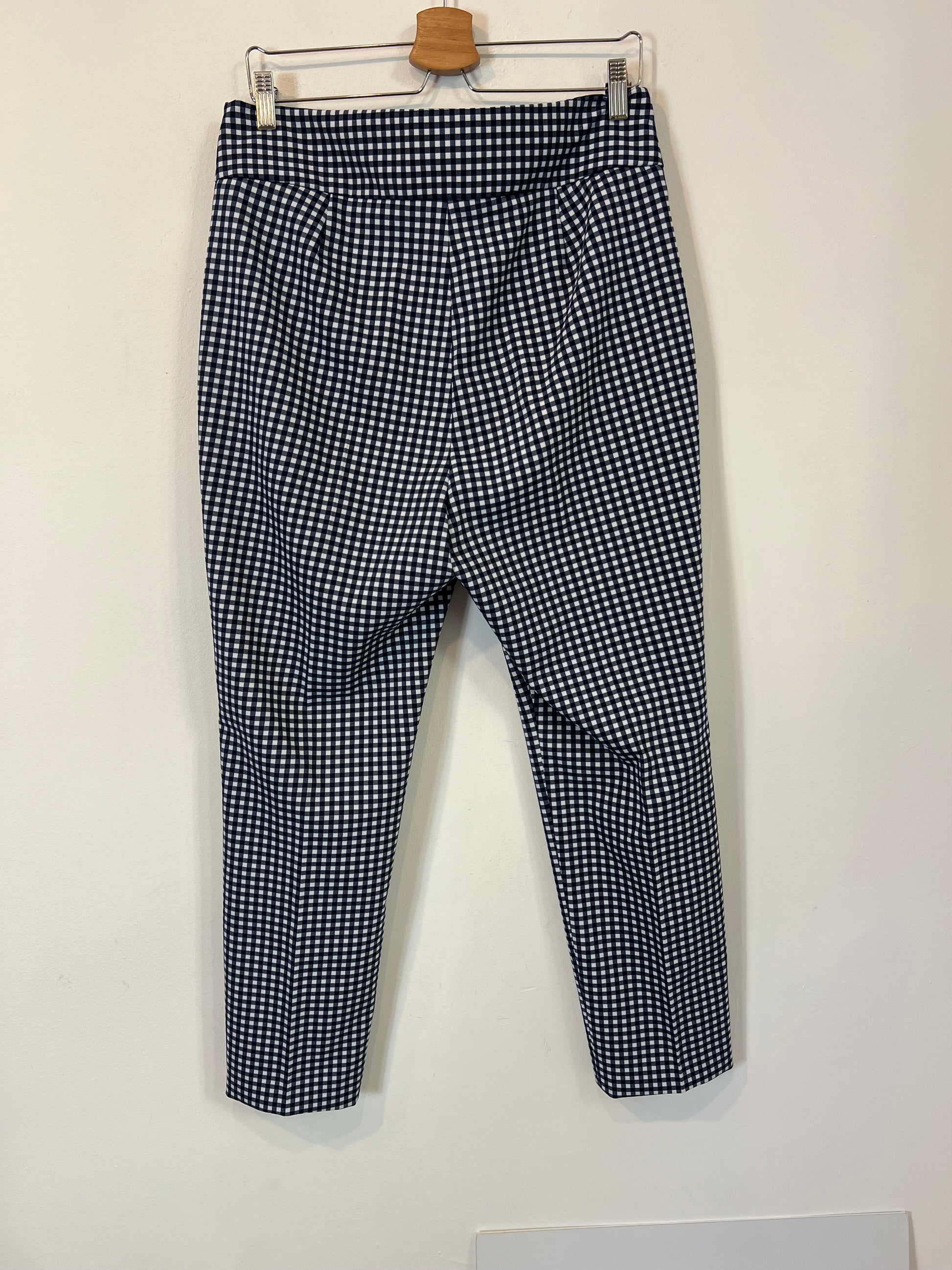 Long chino style trousers in blue and white gingham, waist 39 cm length 39 cm