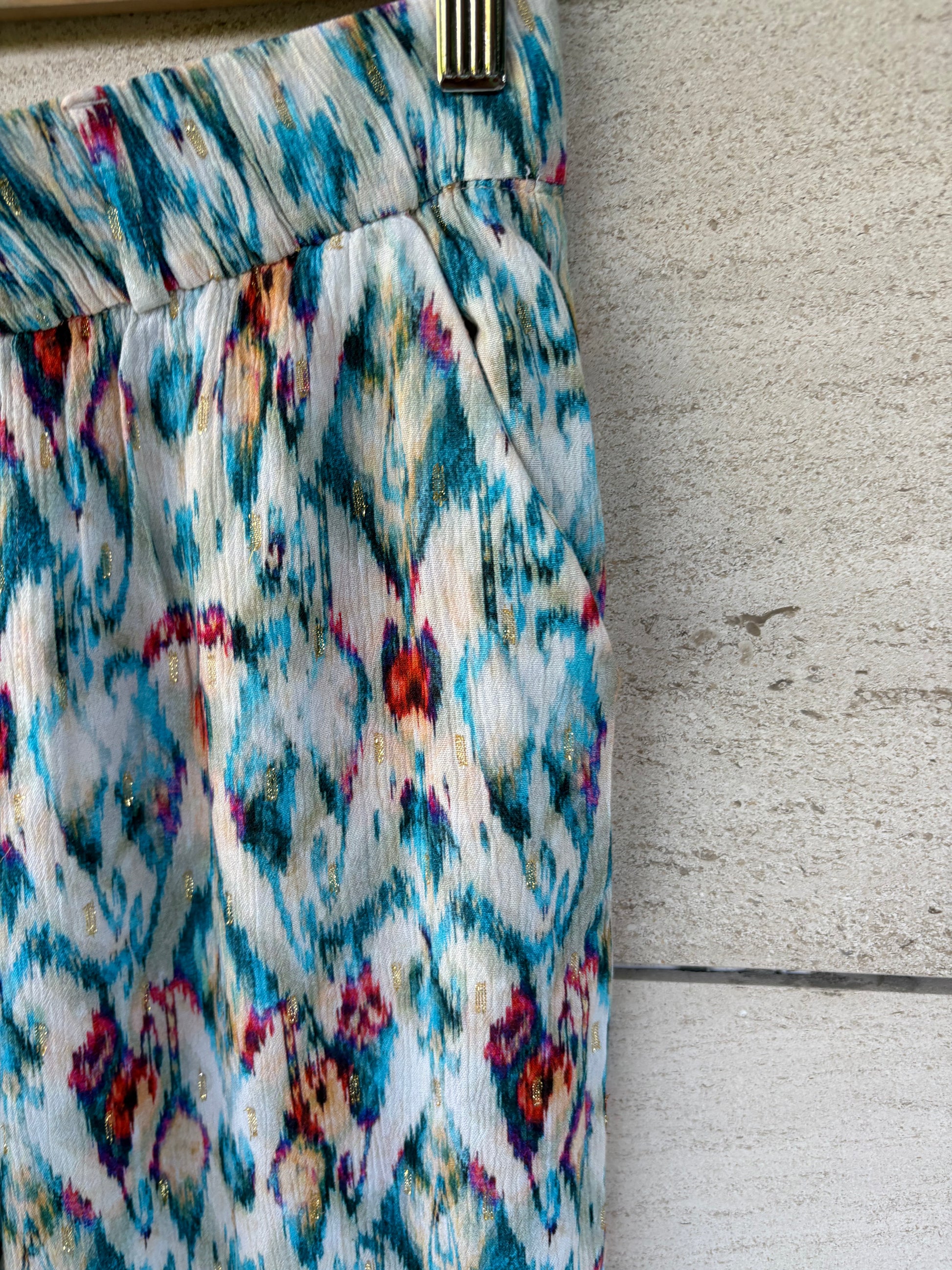 No elástico. Cintura elástica 34 cm , largo 87 cm