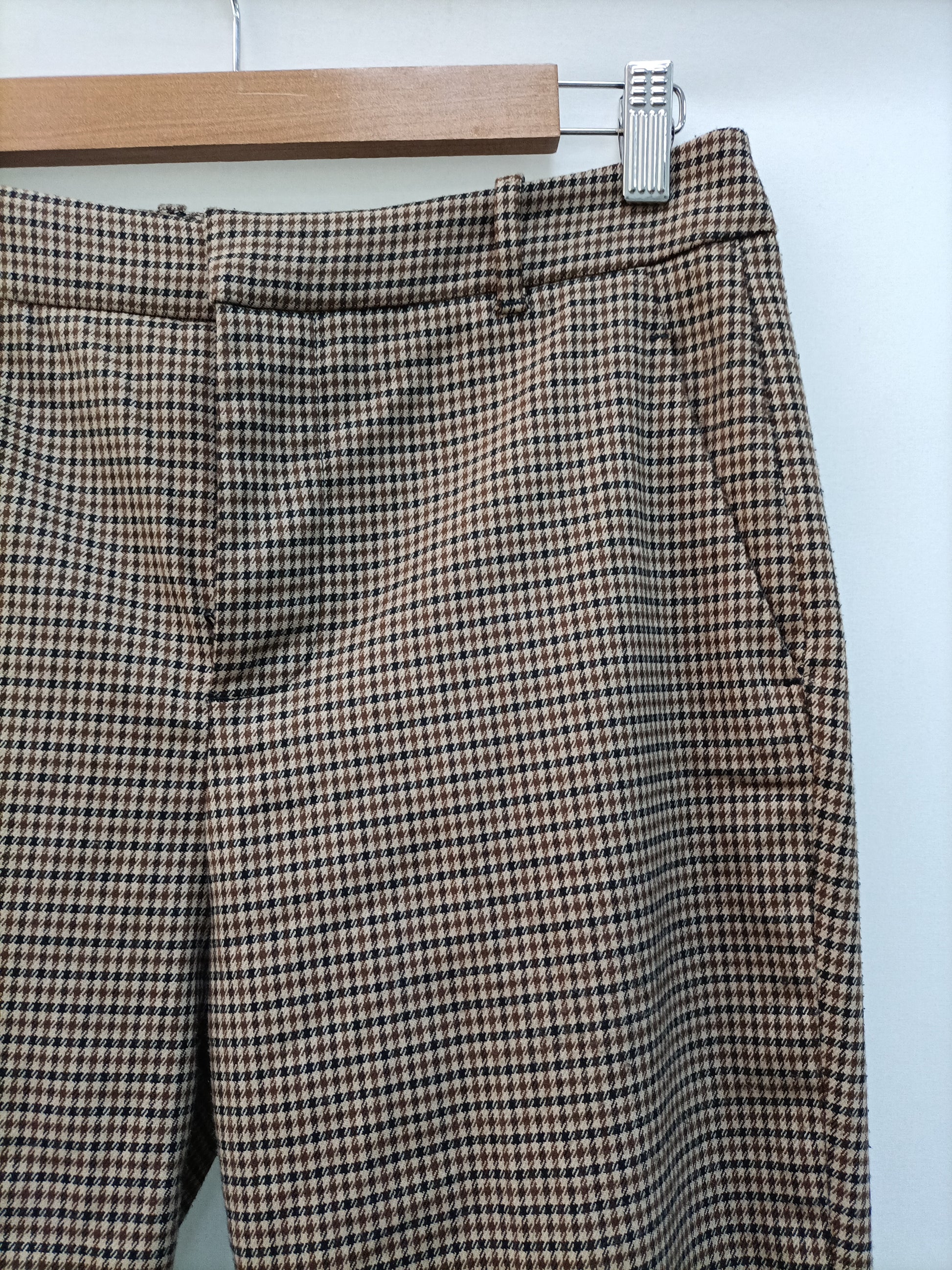 Chino-style dress pants in earth-toned houndstooth. Waist 38 cm, length 92 cm.