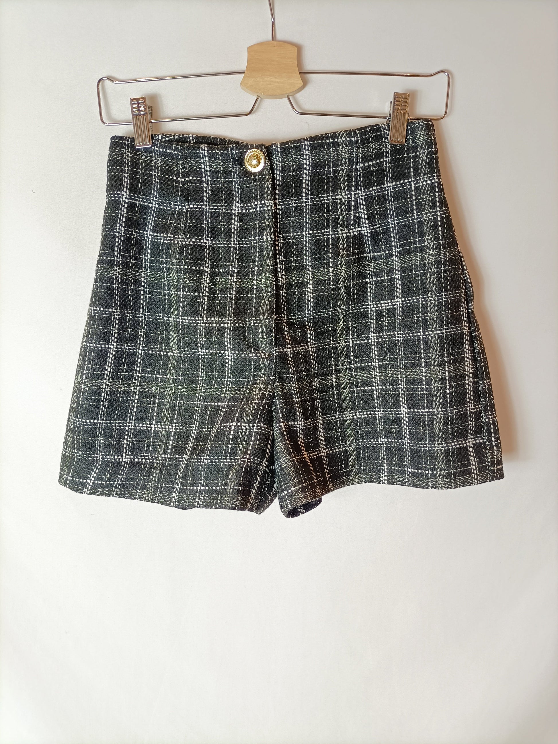 shorts negro y blanco de cuadros de tejido tipo tweed. cintura 34 cm
