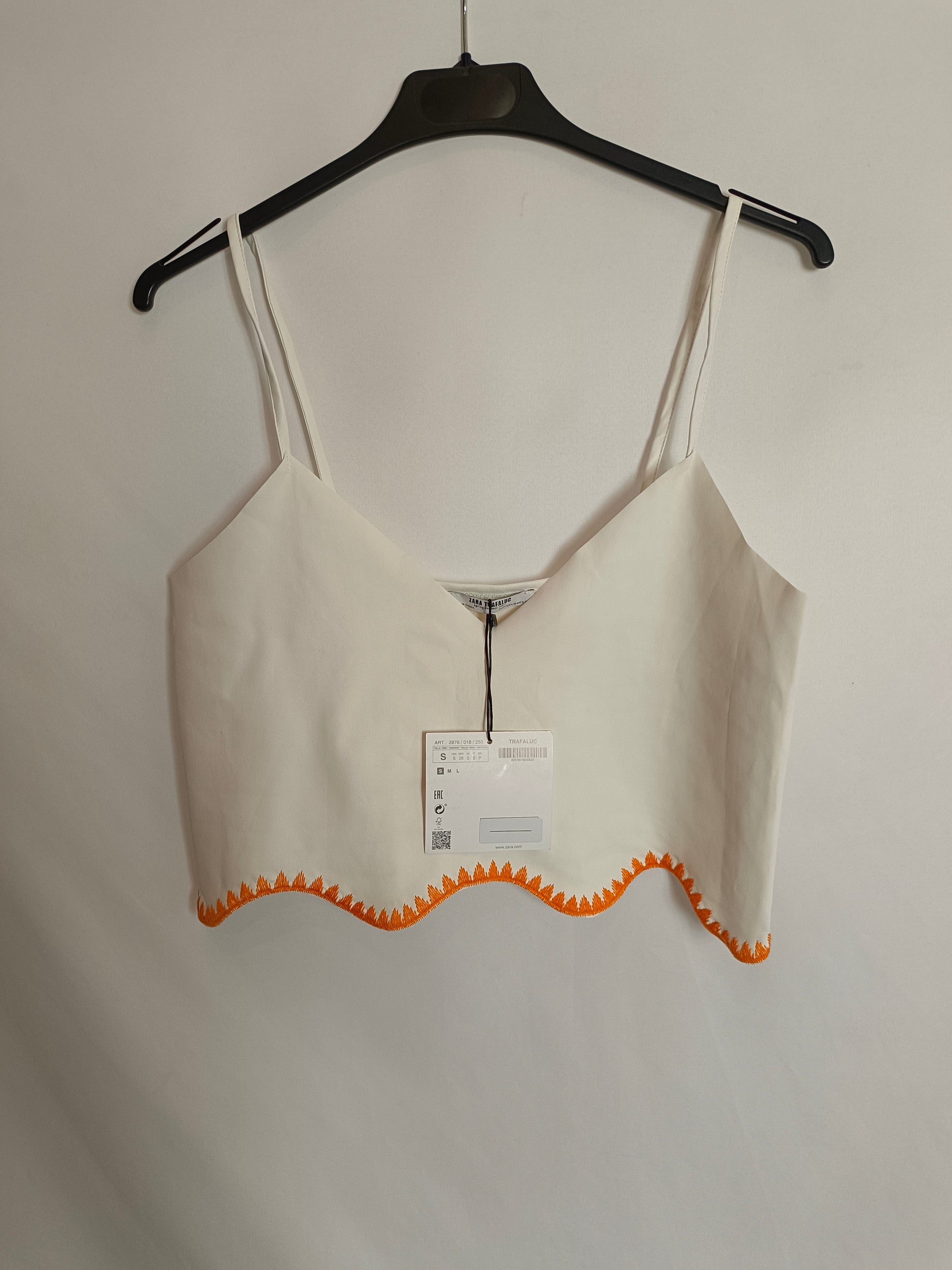 NEW WITH TAG. White double-textured top with orange embroidered details.