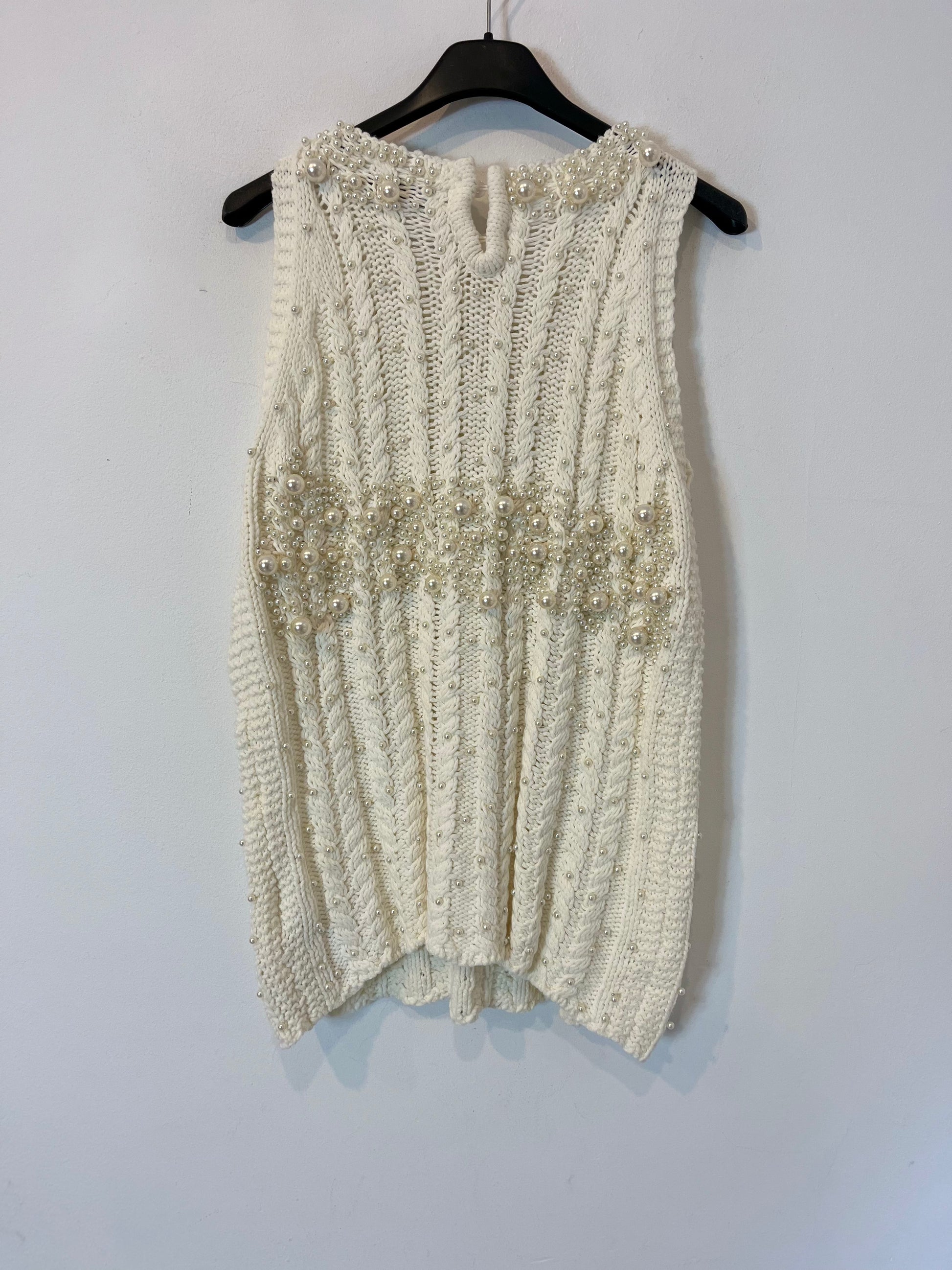 Sleeveless balconette top with pearl knit. Back 48 cm, length 61 cm.