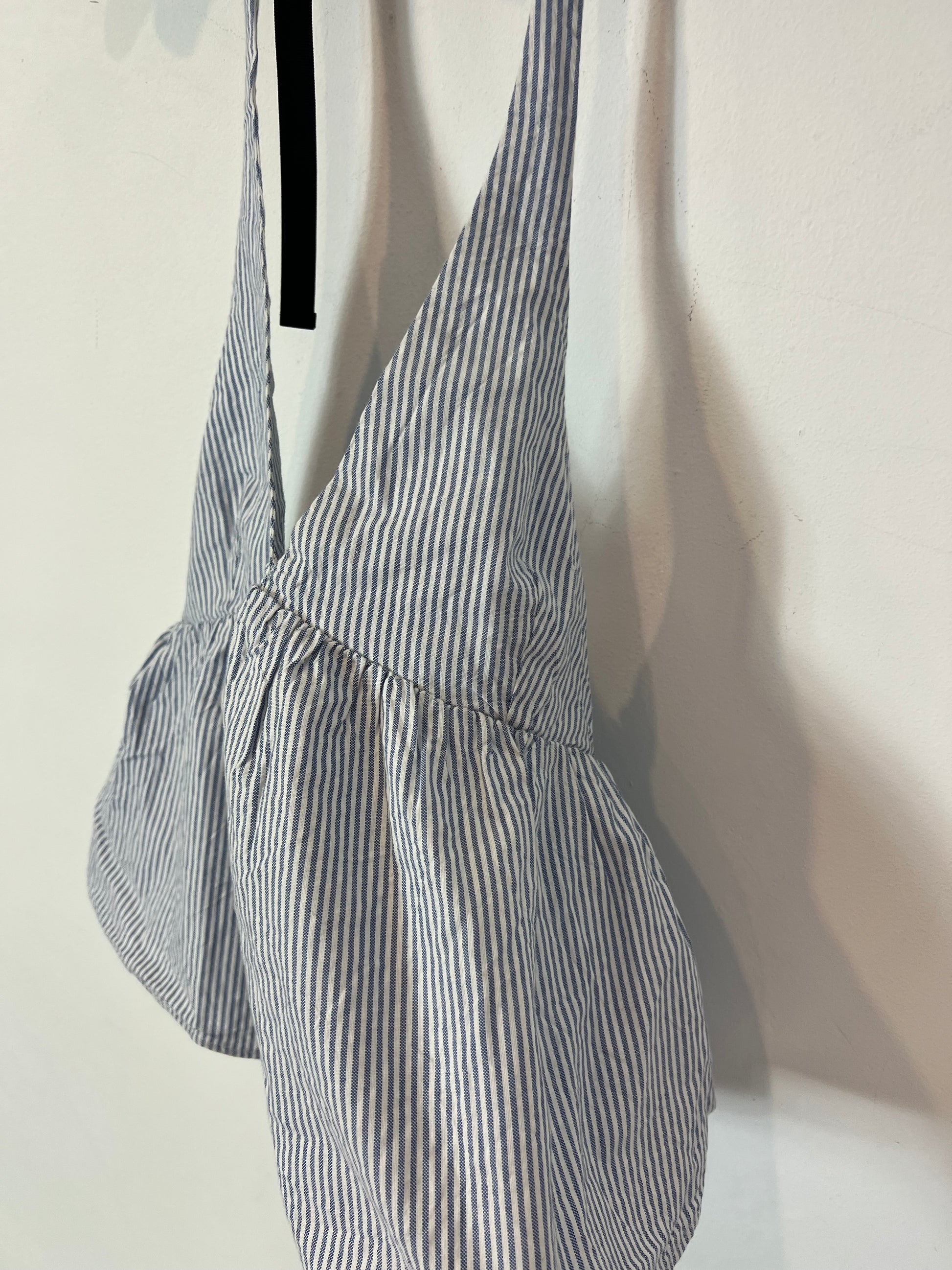 top rayas azul y blanco atado al cuello
