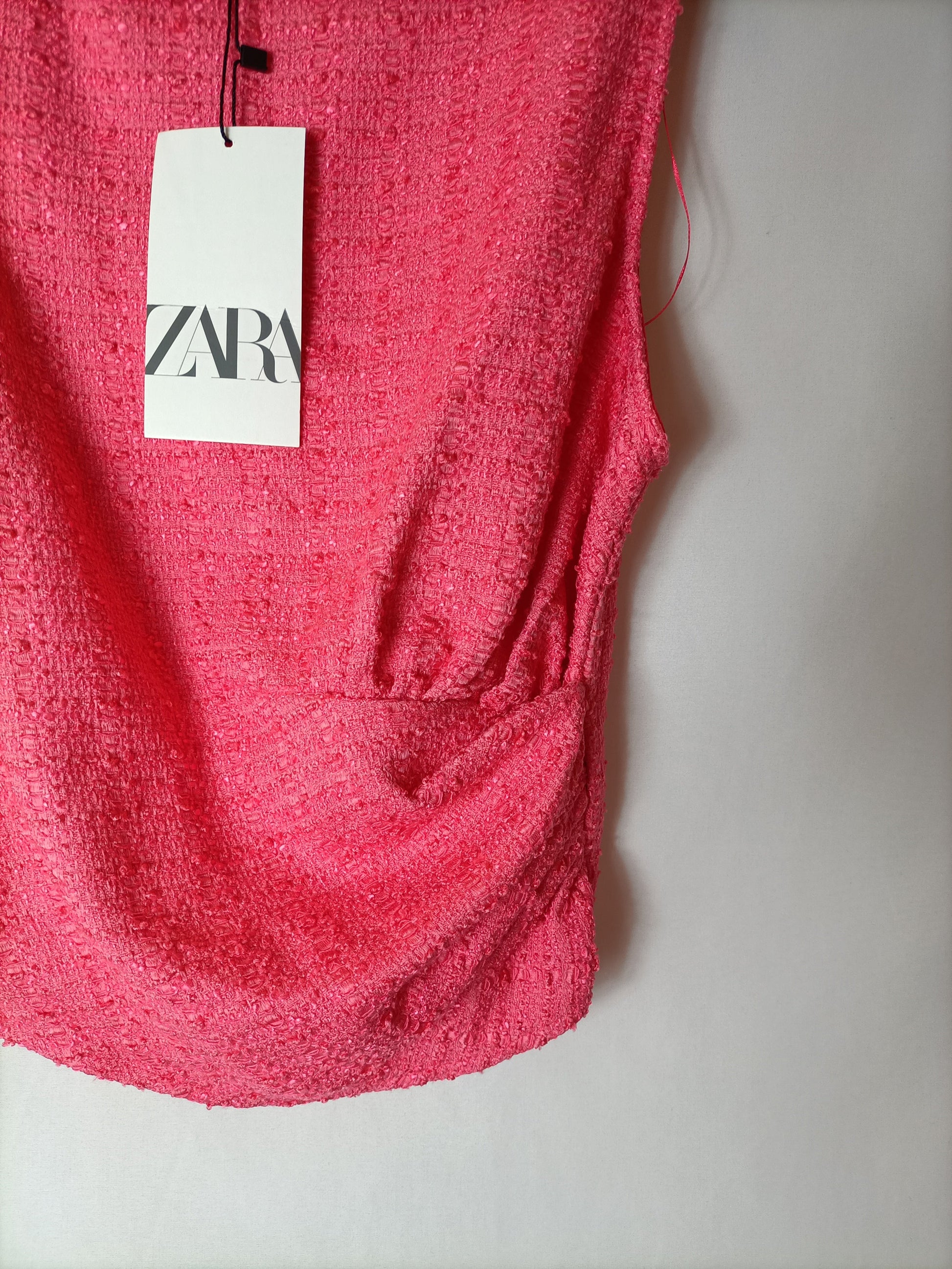 NEW WITH TAG. Pink tweed wrap top with gathered detail. No stretch.