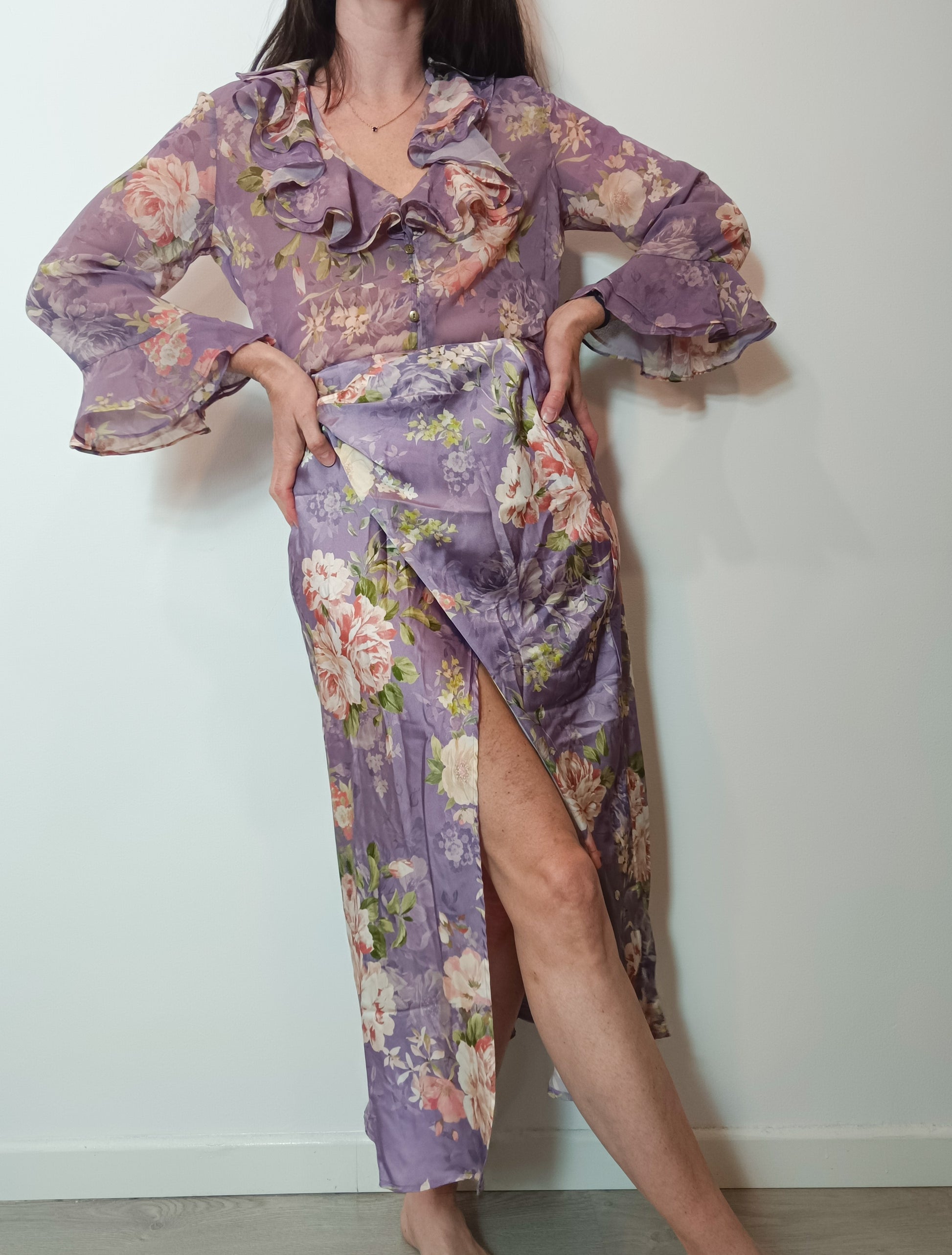 ZARA. Total mauve floral look T.xs
