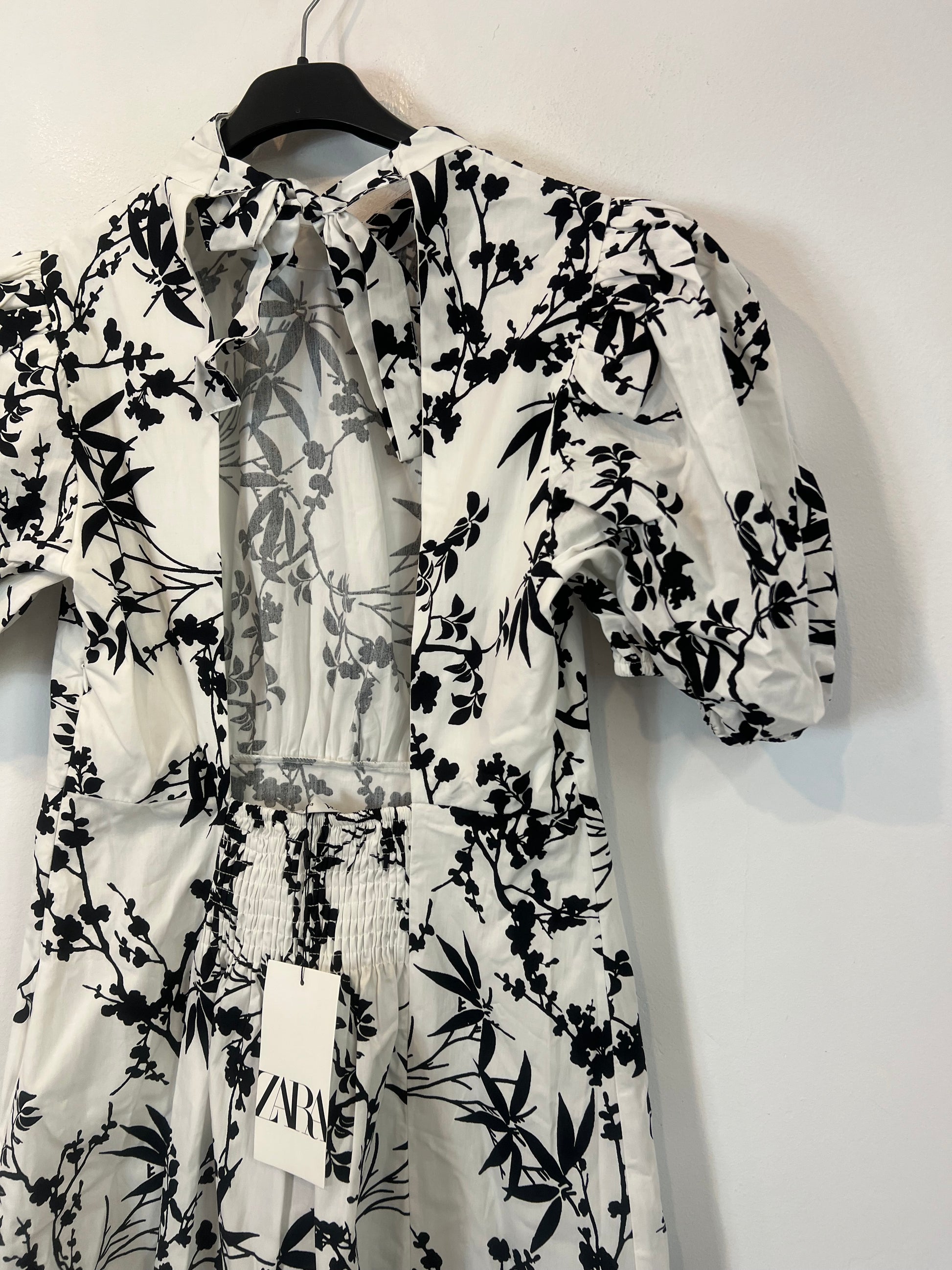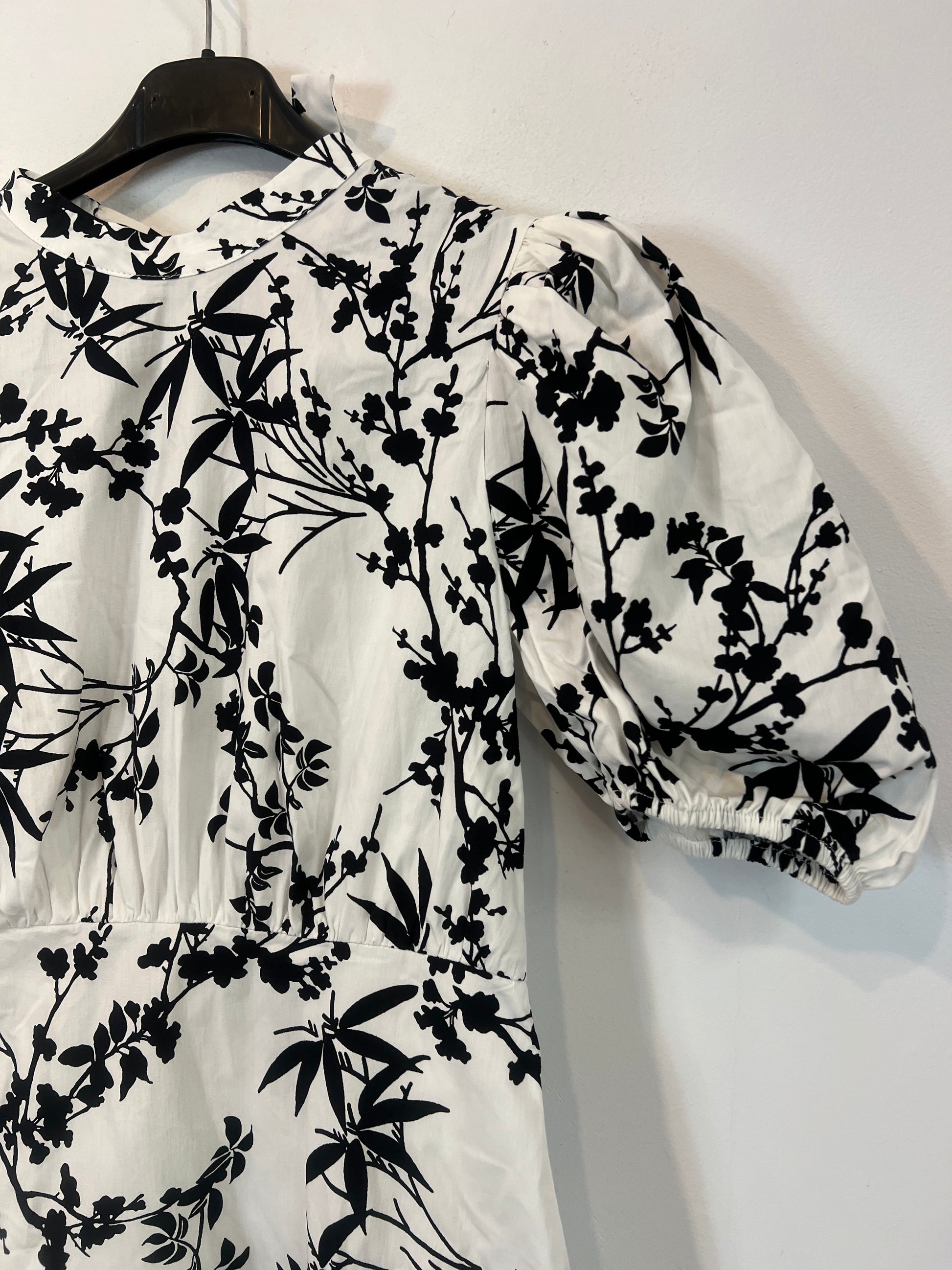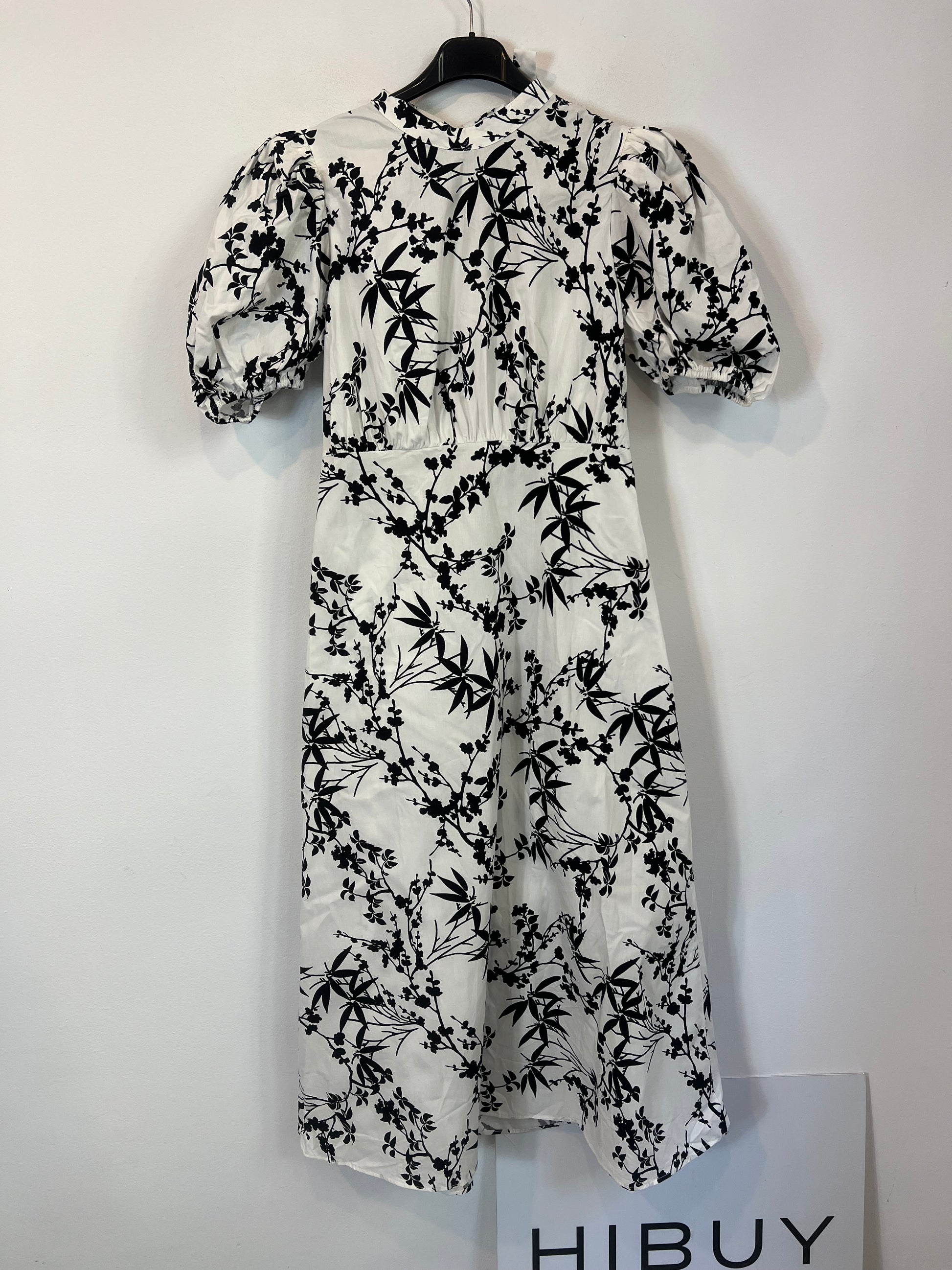 NUEVO CON ETIQUETA. Vestido blanco con flores negras. espalda baja. lazada. de sisa a sisa 45 cm argos 118 cm
