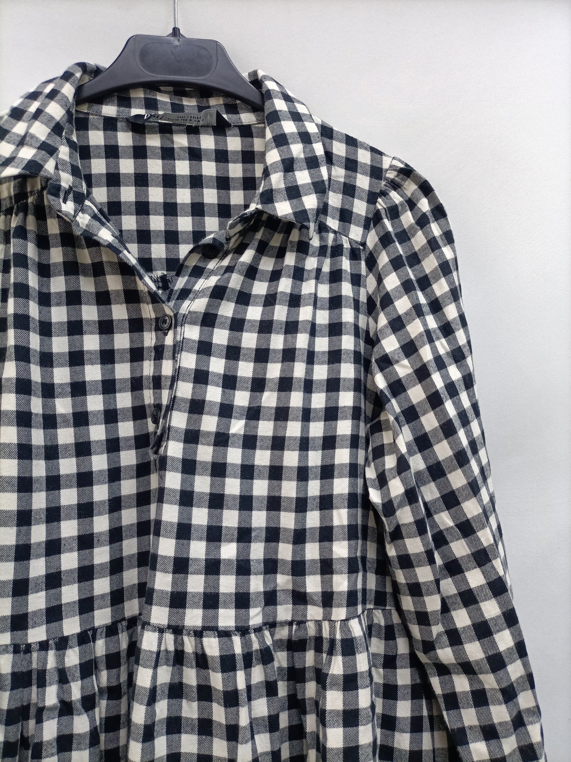 Short oversized checkered dress. 51 cm from armpit to armpit, 85 cm long.