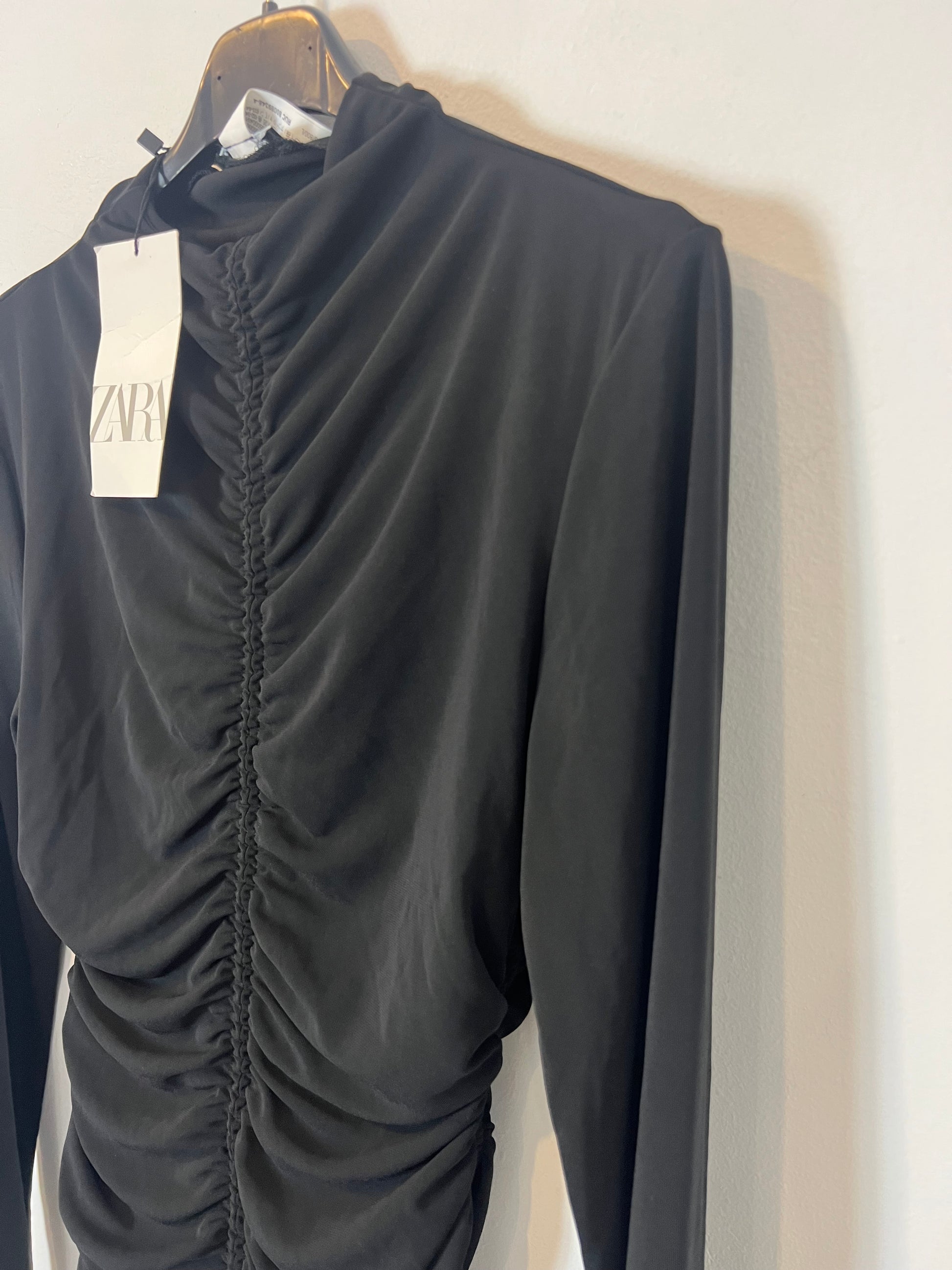 ZARA. Vestido corto elástico fruncidos. T L