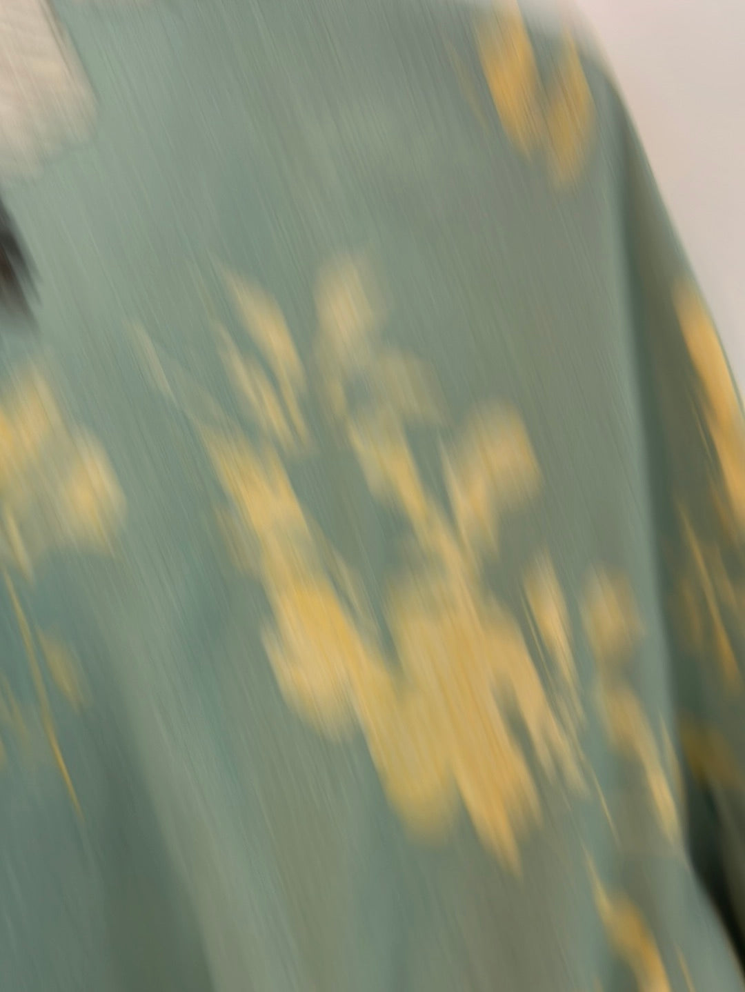 Short dress with ruffled sleeves. Elastic waist with belt. 93 cm long.