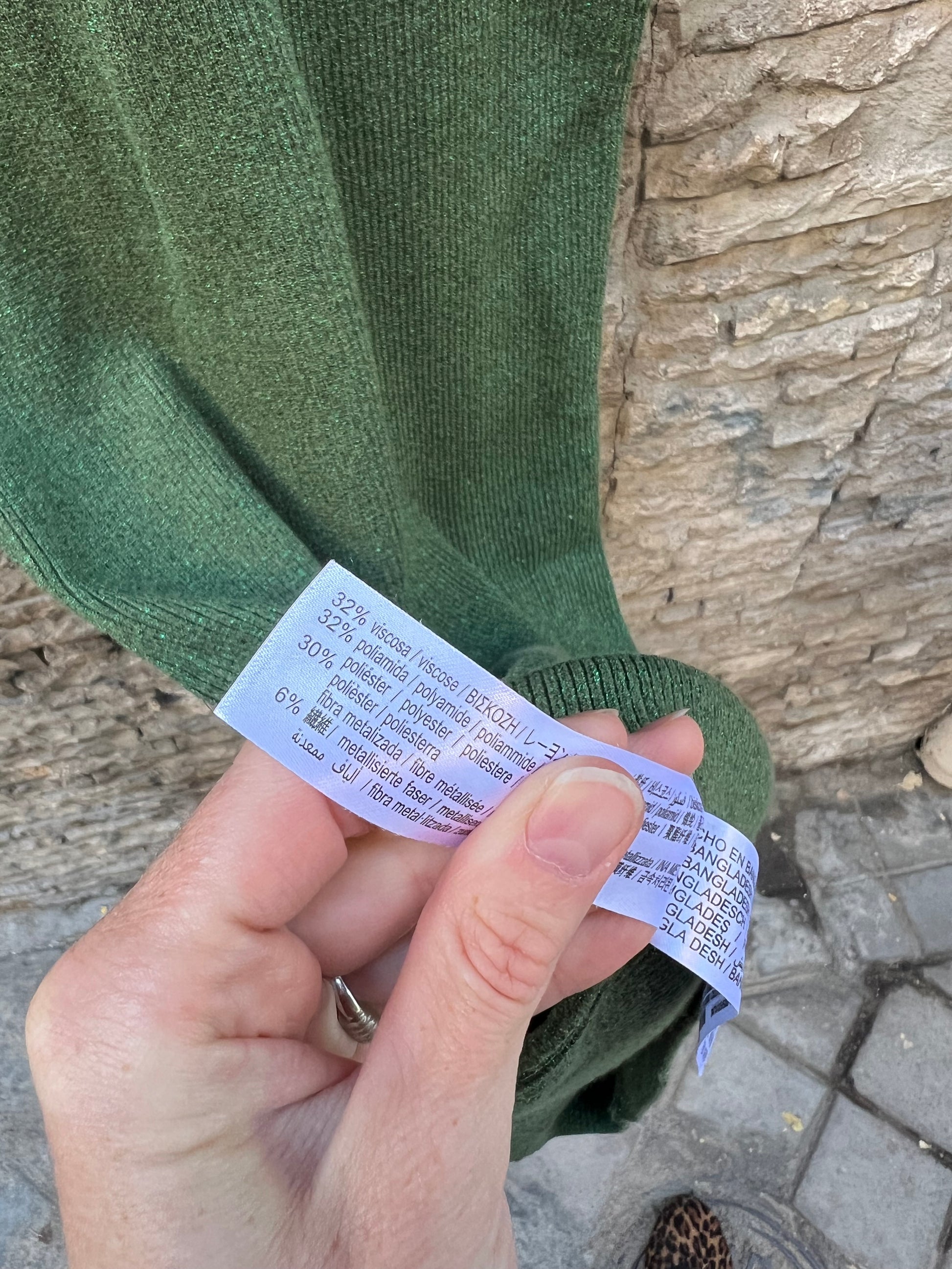 largo 120 cm . Verde canalé elastico con hilos metalizados