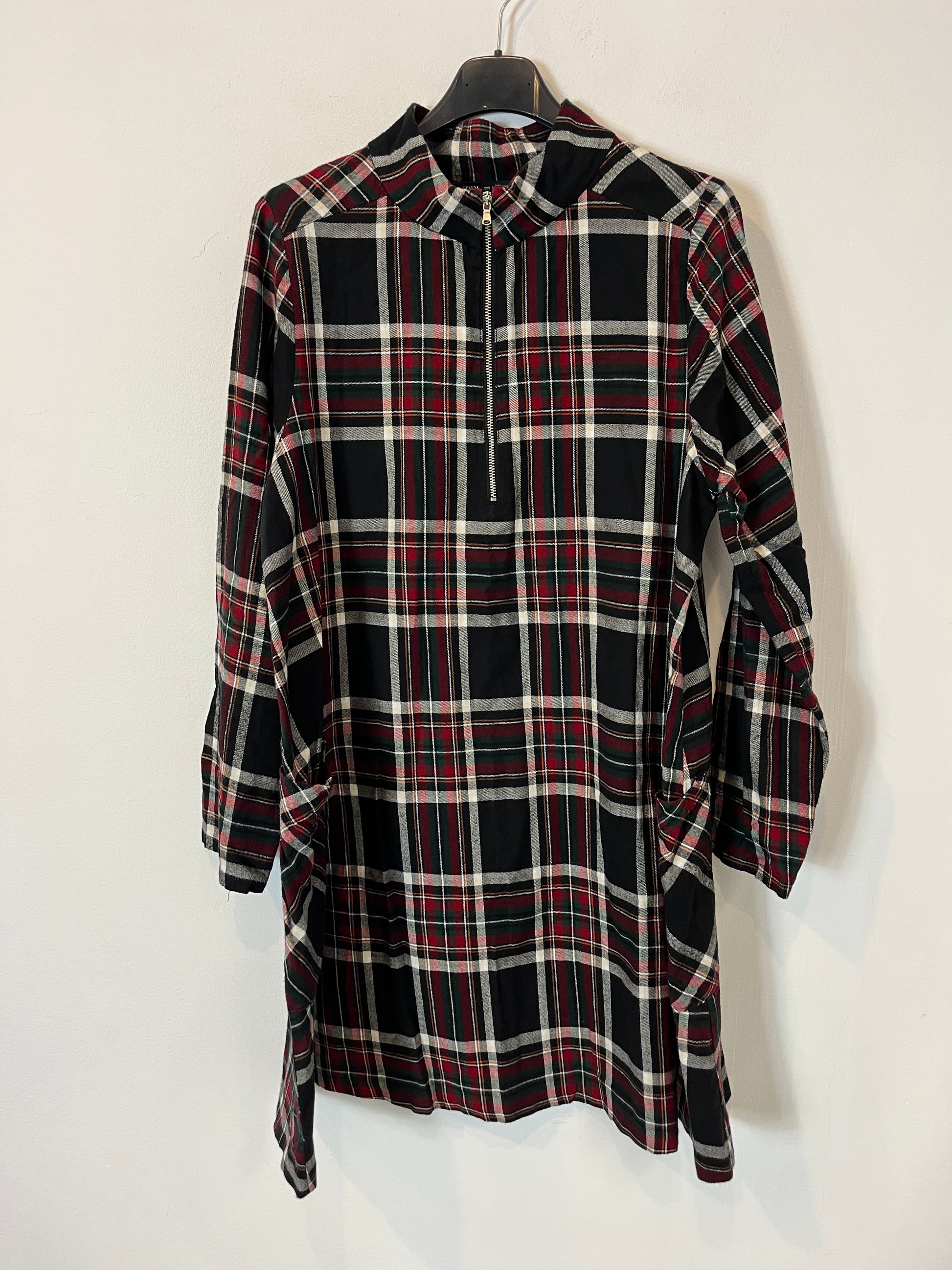 Vestido negro cuadros textura franela fina. Largo 84 cm