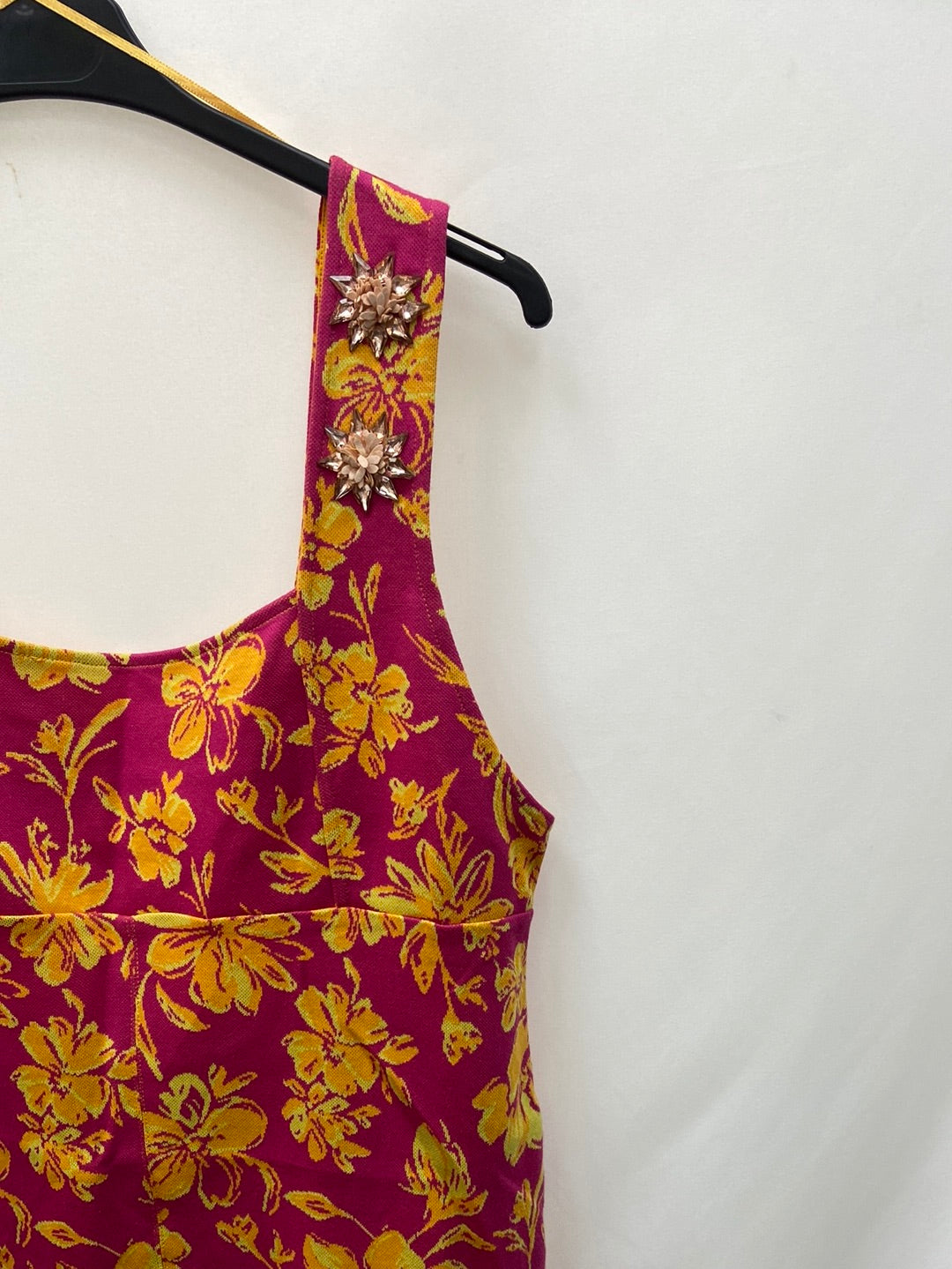 Elastic with rhinestone detail on the straps. Pink and mustard knit.
