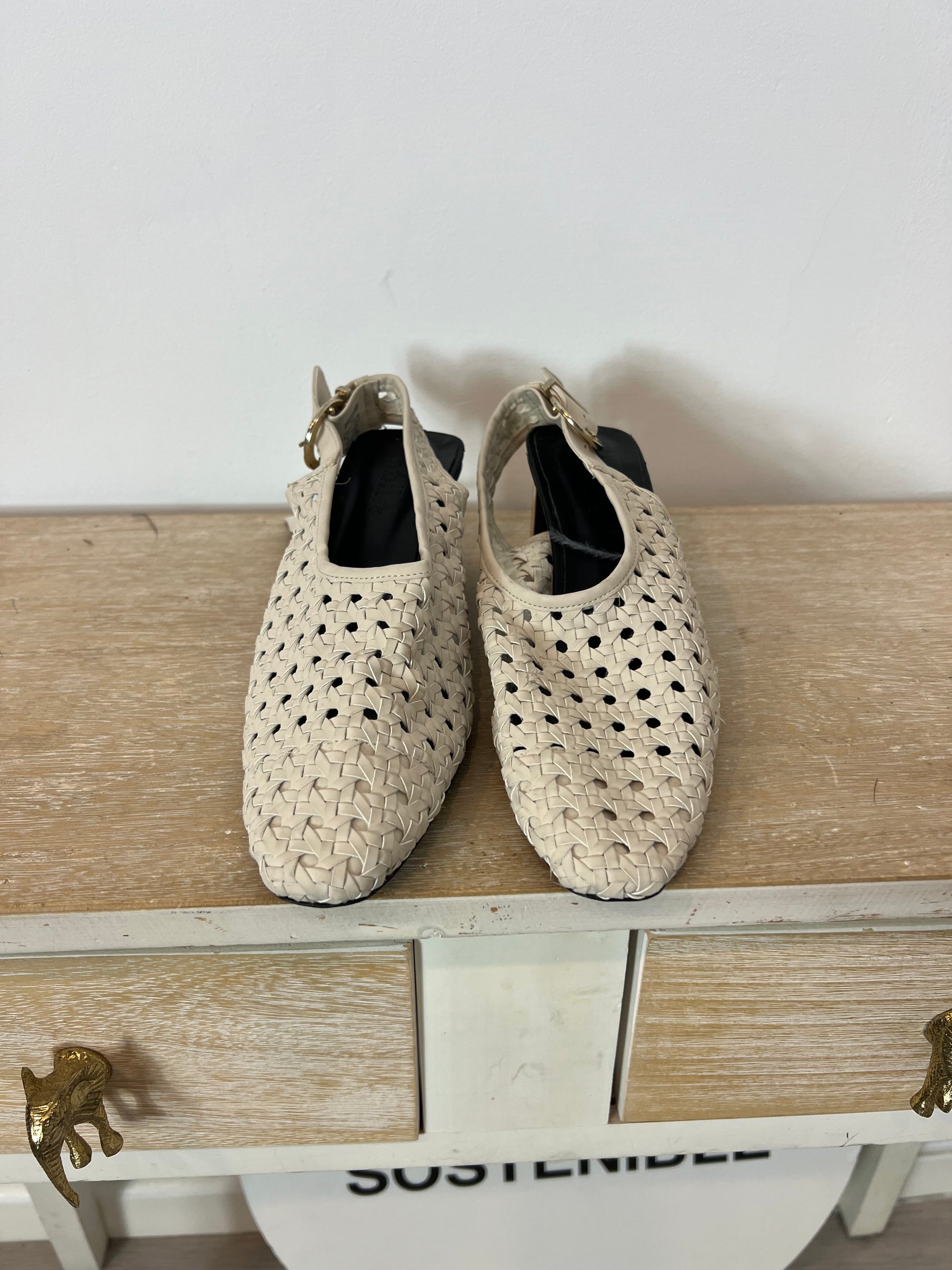 NEW WITH TAG. Die-cut shoe with off-white heel detail.