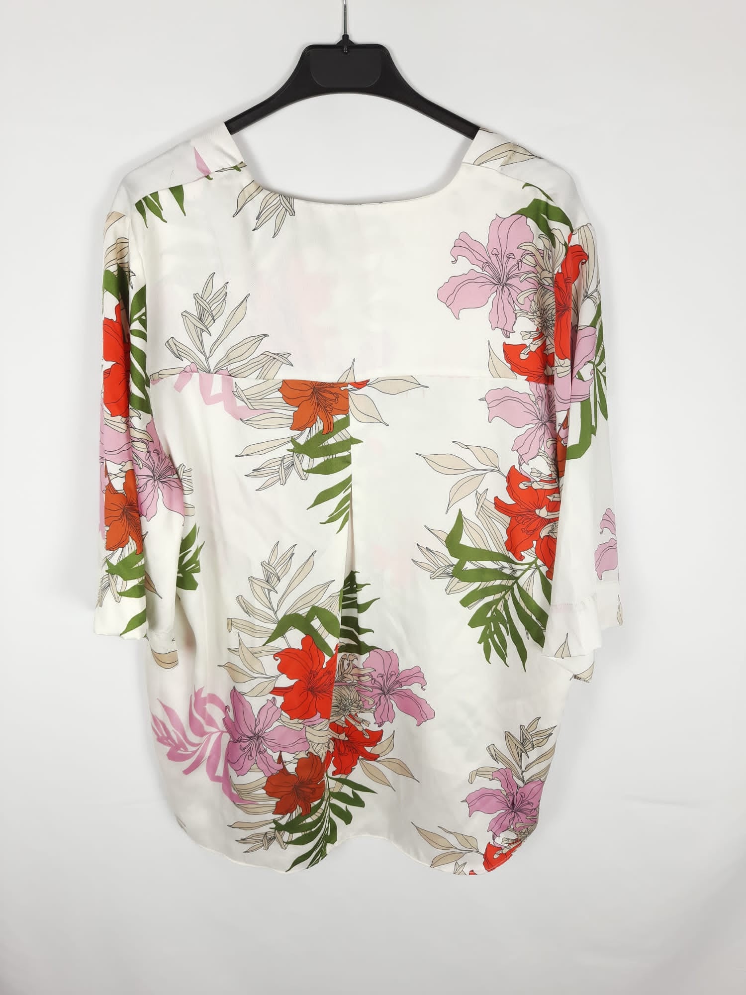 Zara. Beige blouse with a large floral print. Silk-like fabric. Non-stretchy. Armhole to armhole 53 cm, length 75 cm.