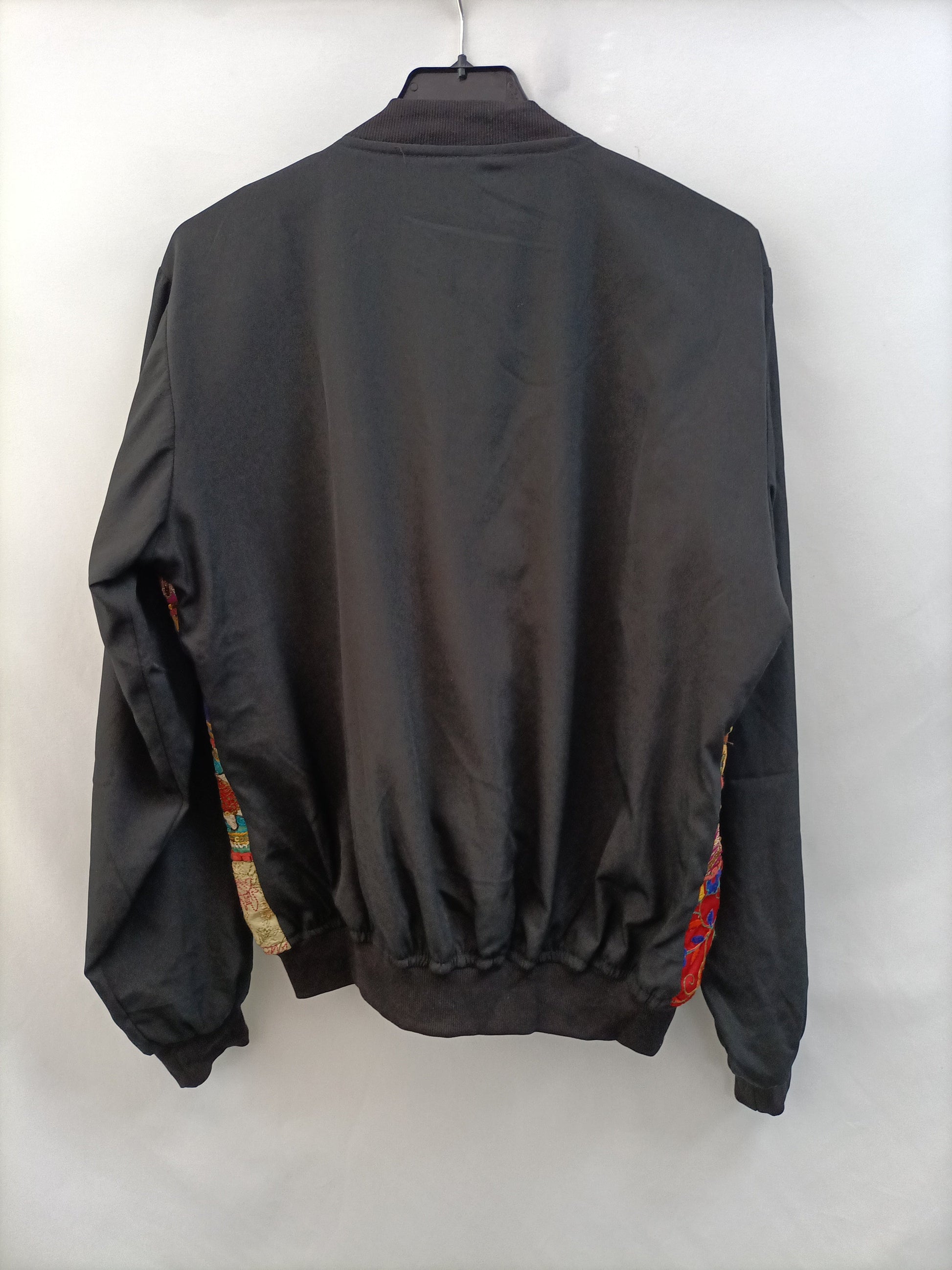 Bomber negra con la parte delantera bordada con diferentes estampados. De sisa a sisa 53 cm Largo 65 cm