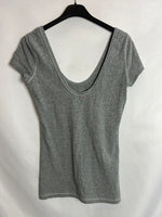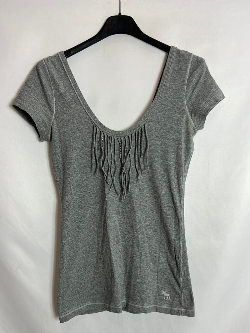 ABERCROMBIE&FITCH. Camiseta ajustada gris flecos. T M