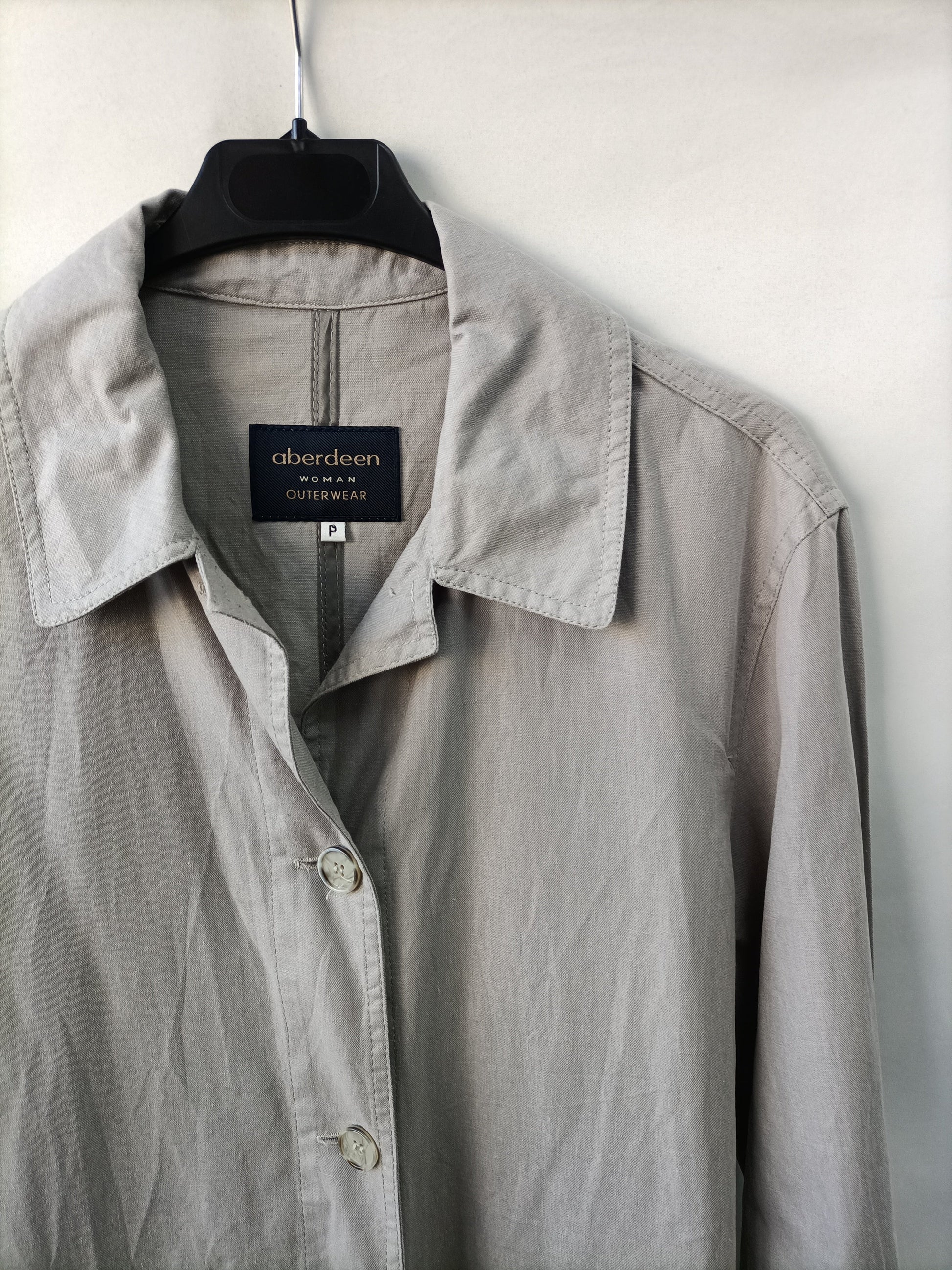 Parka gris finita de tejido semiimpermeable. N o elástico. de sisa a sisa 48 cm Largo 82 cm