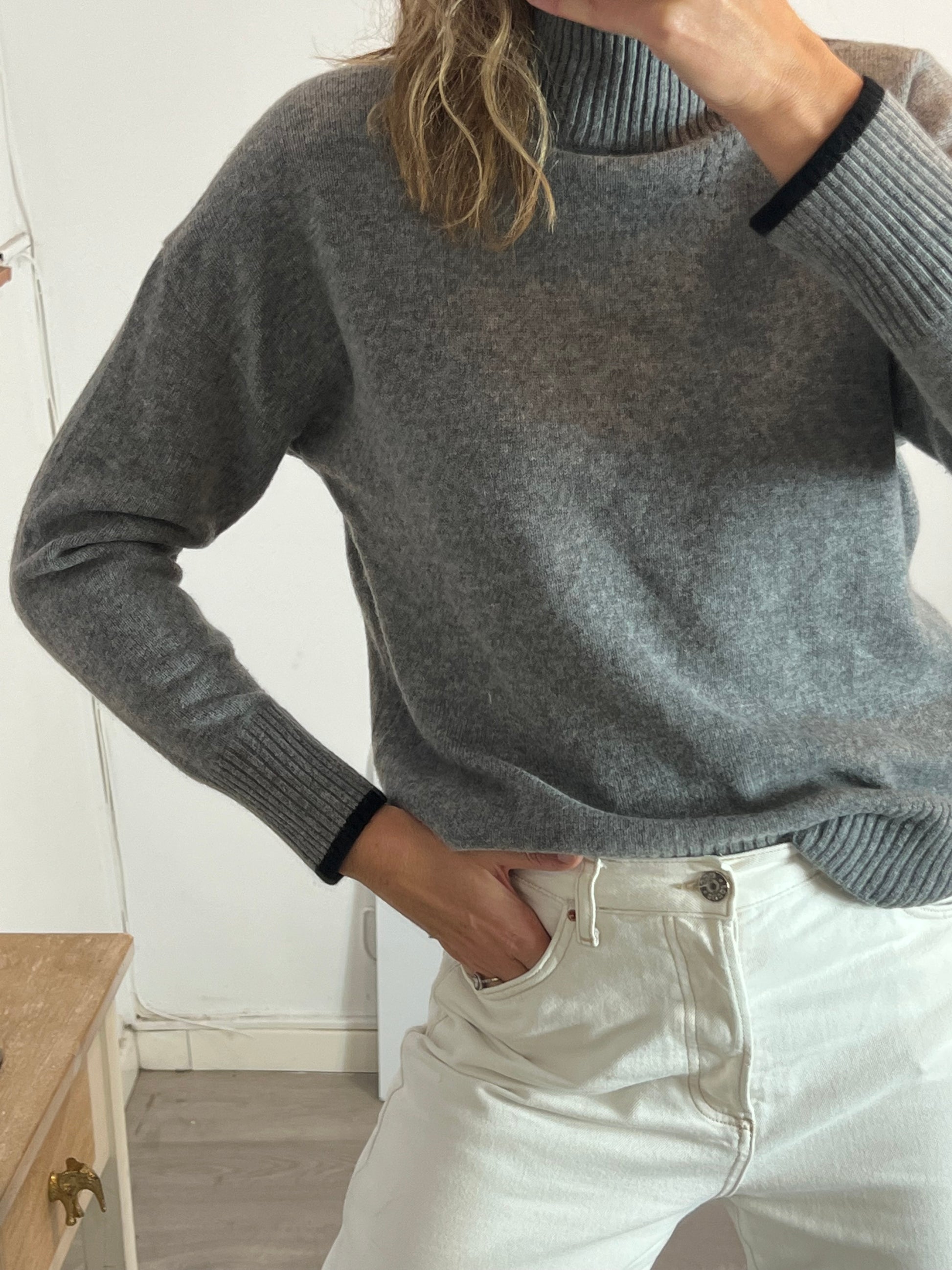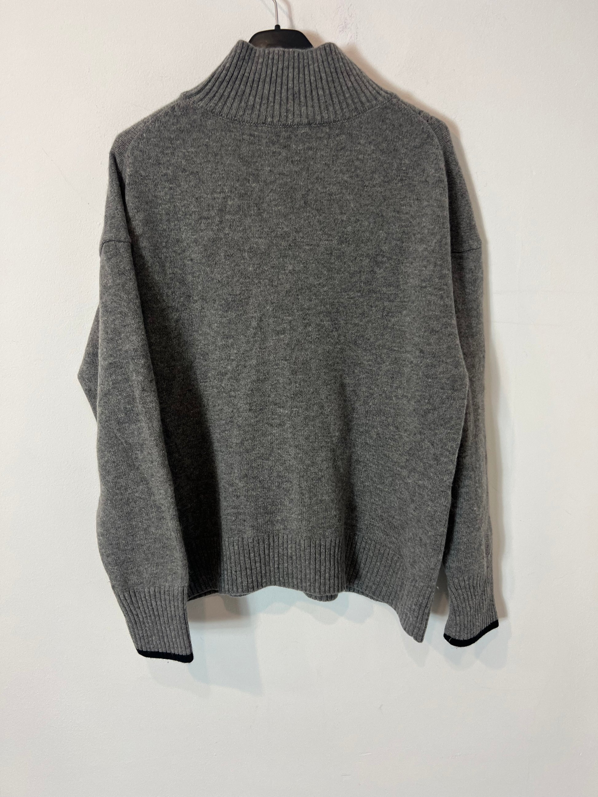 Jersey gris cuello alto lana y cashemre. De sisa a sisa 55cm, largo 60cm