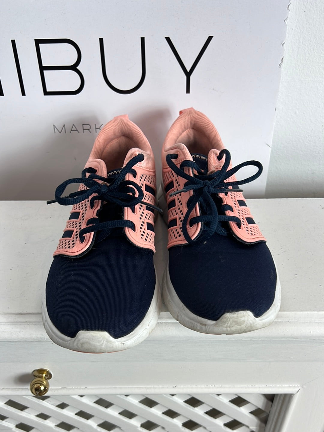 zapatillas azul y rosa ligera. Plantilla interior un poco desgatada