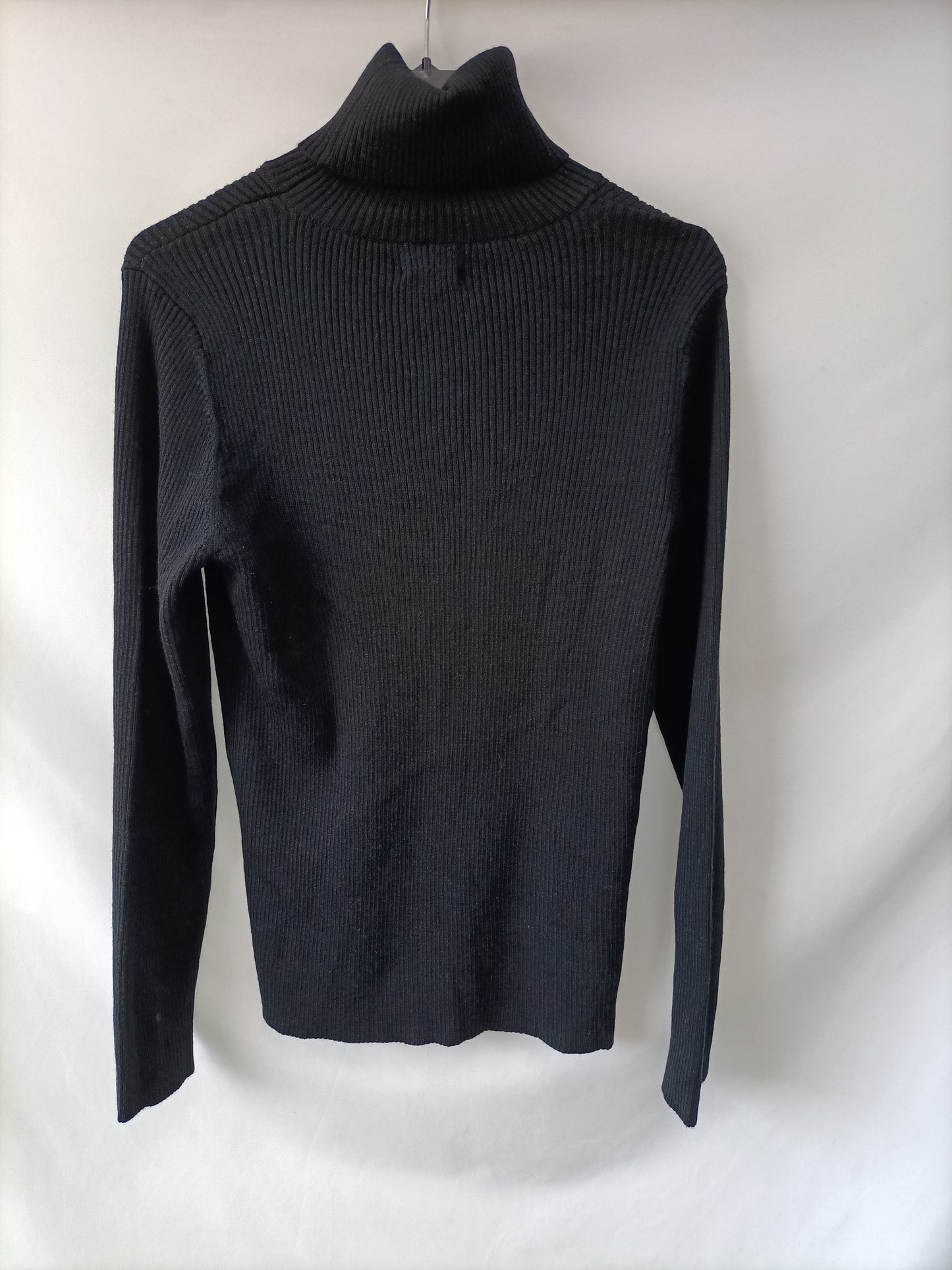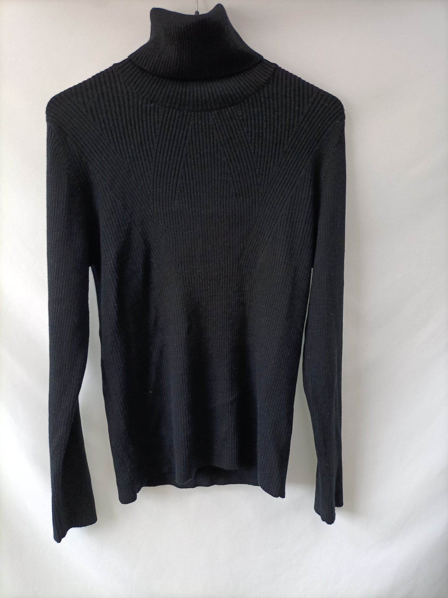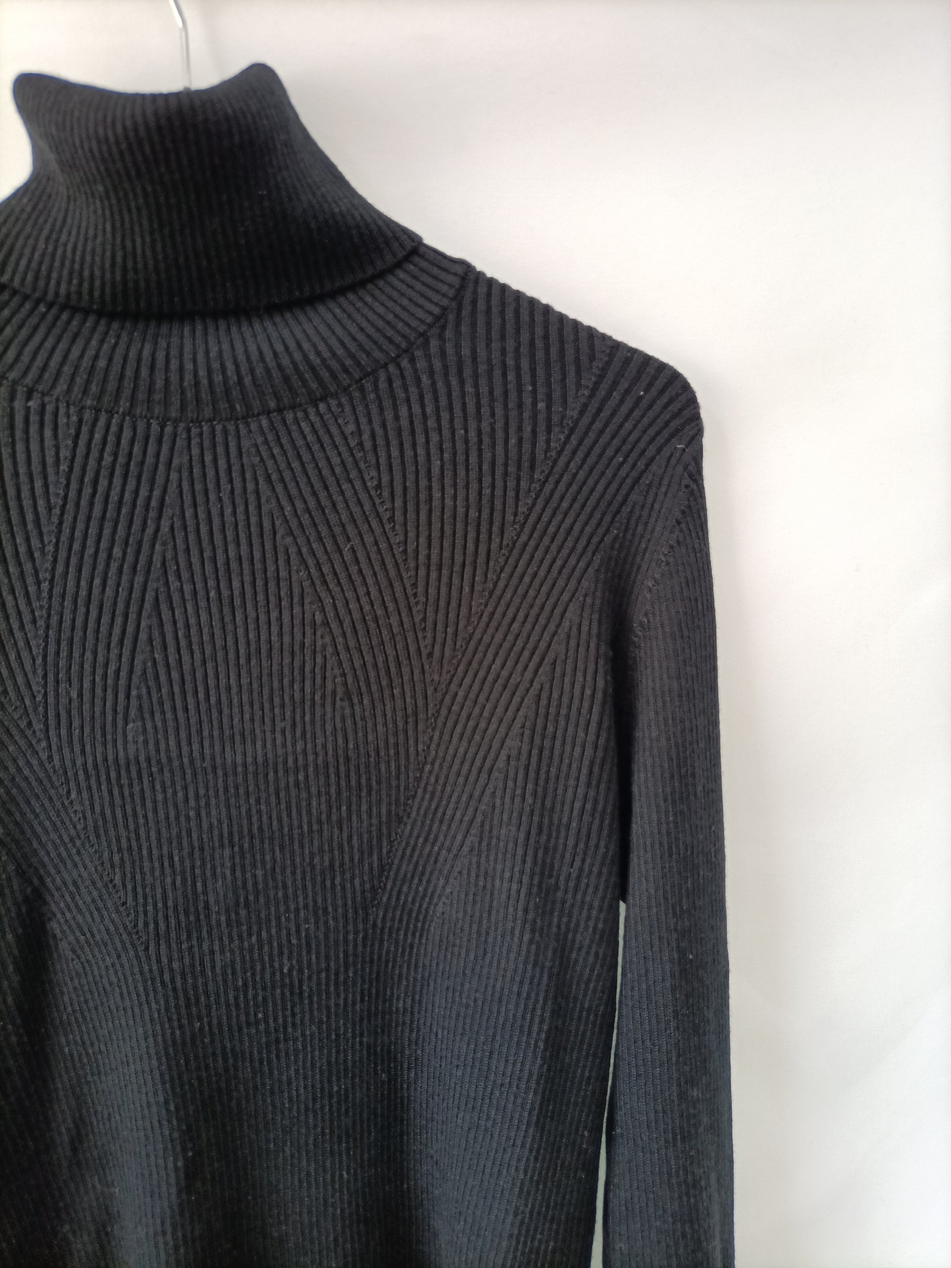 Aldolfo dominguez. Jersey negro cuello alto de punto de canalé. Elástico. Ajustado. Largo 64 cm. 70% acrilico 30% algodón