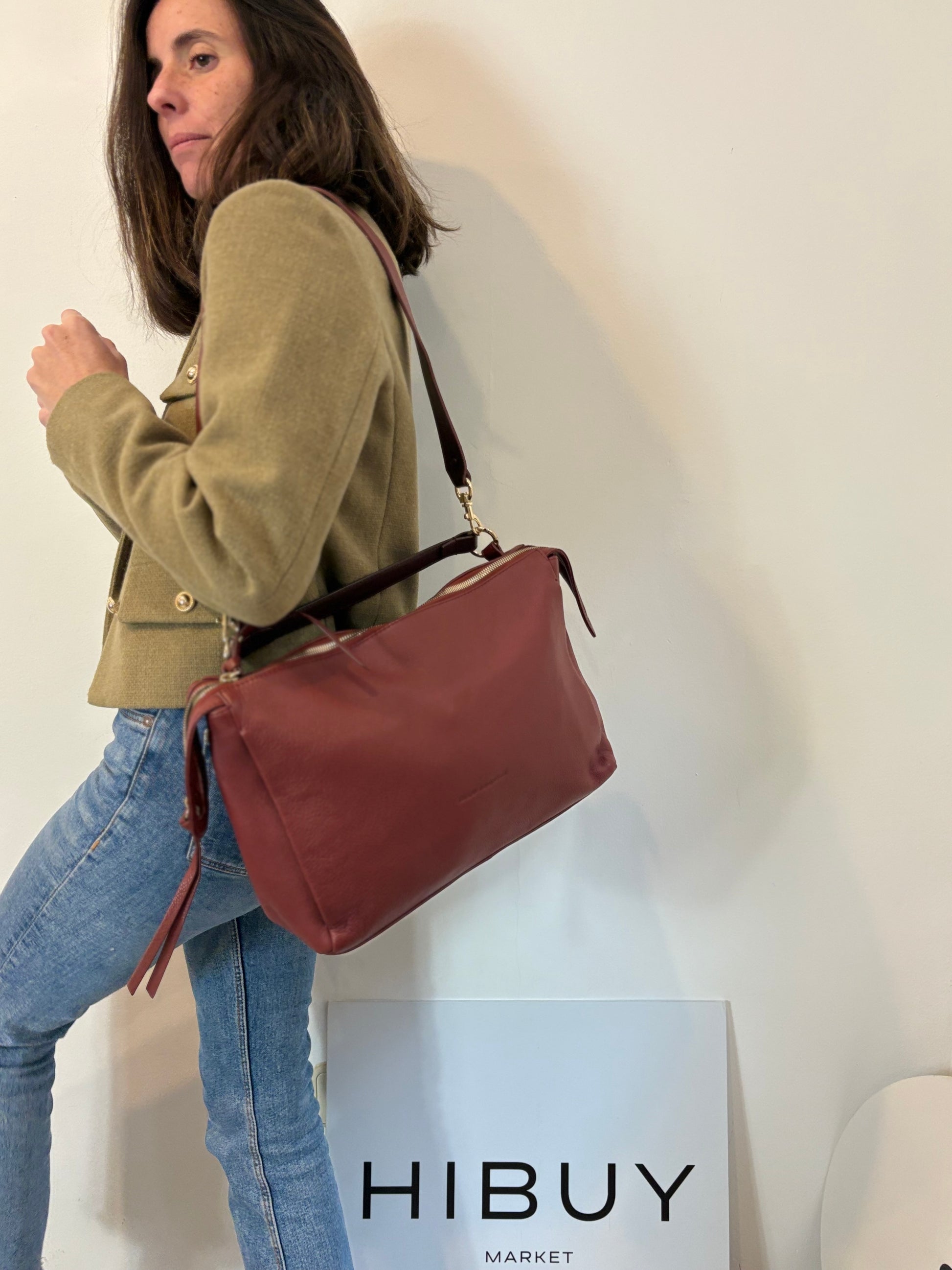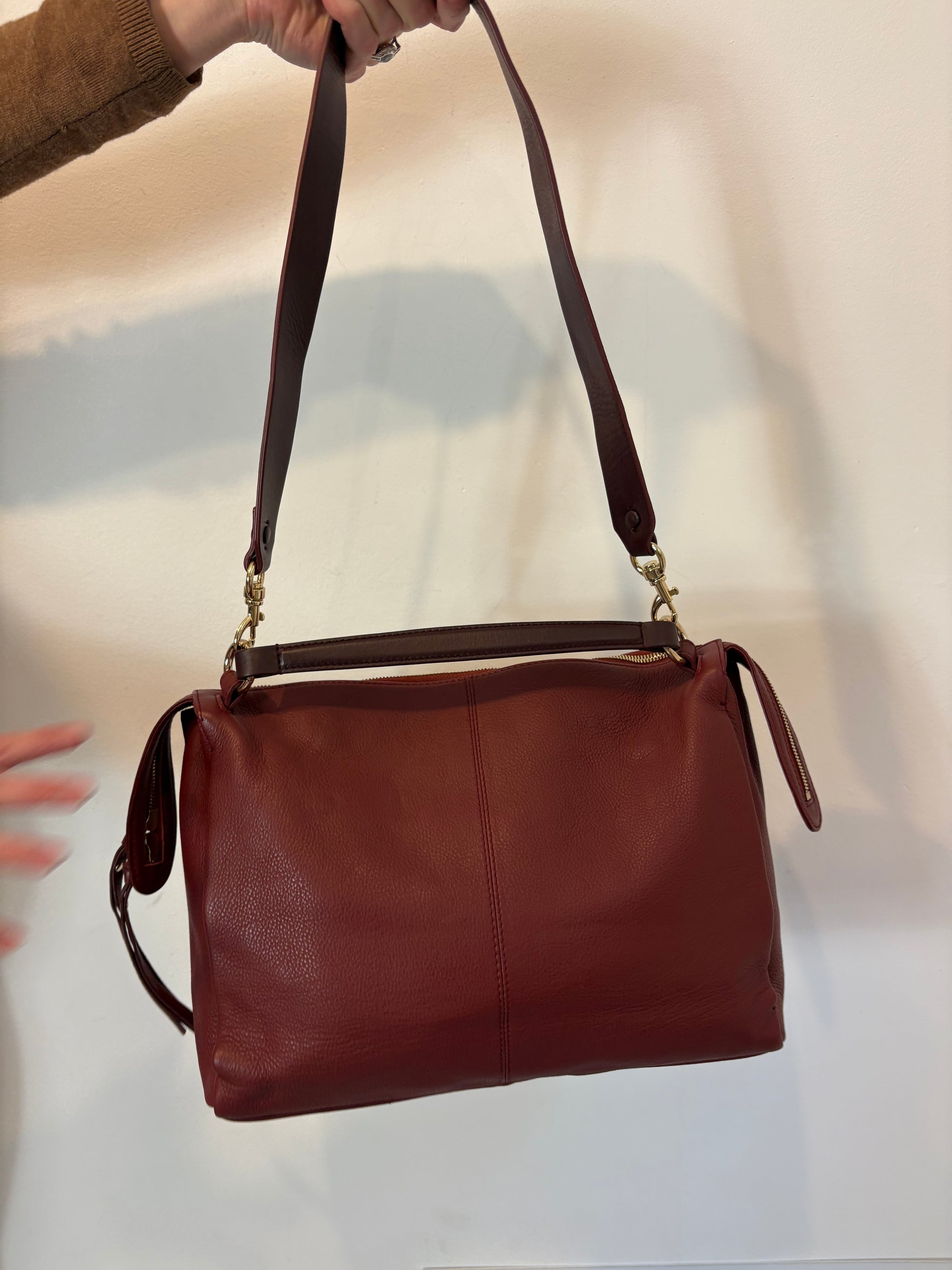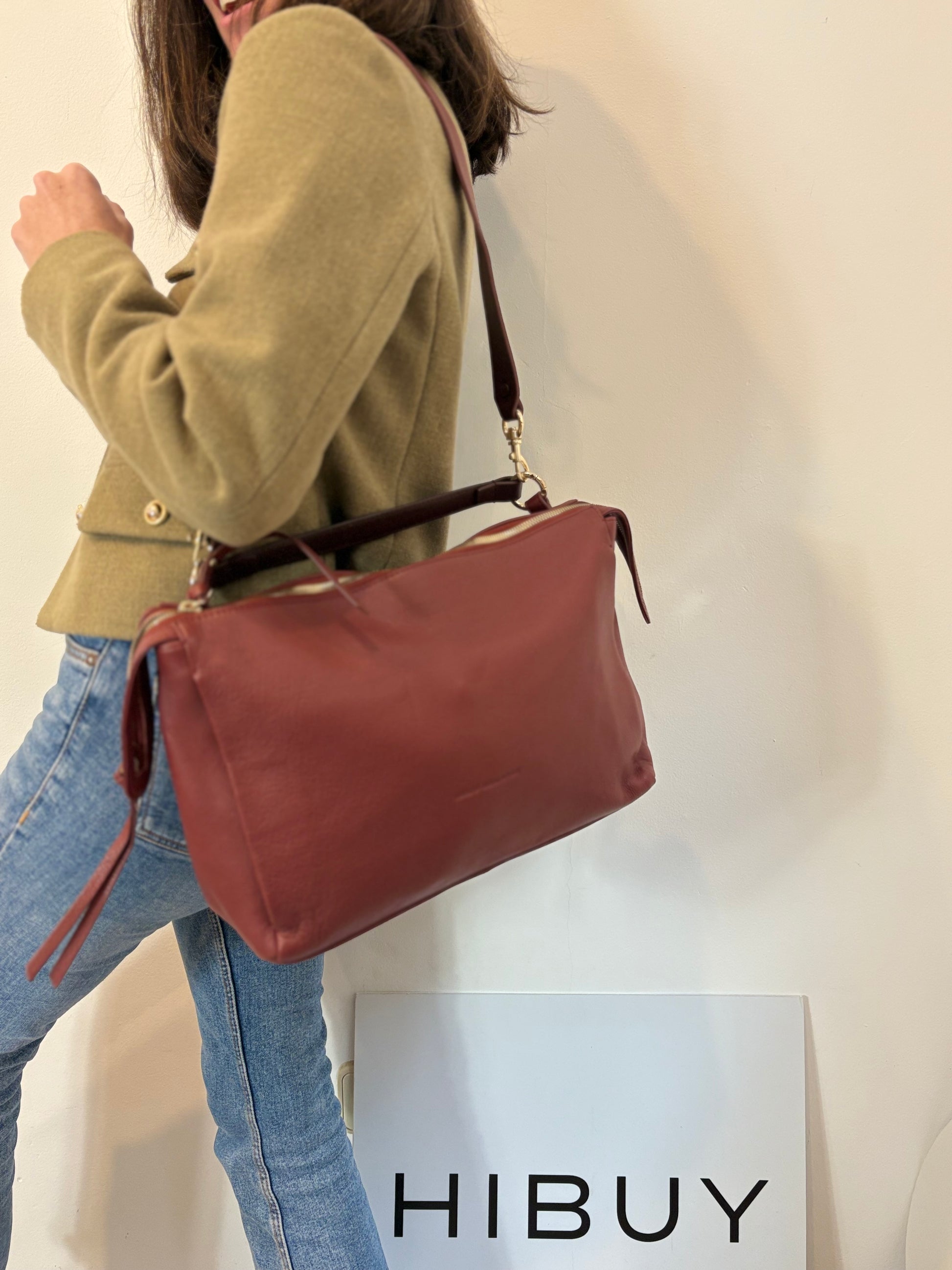 ADOLFO DOMINGUEZ. Bolso piel burdeos doble asa