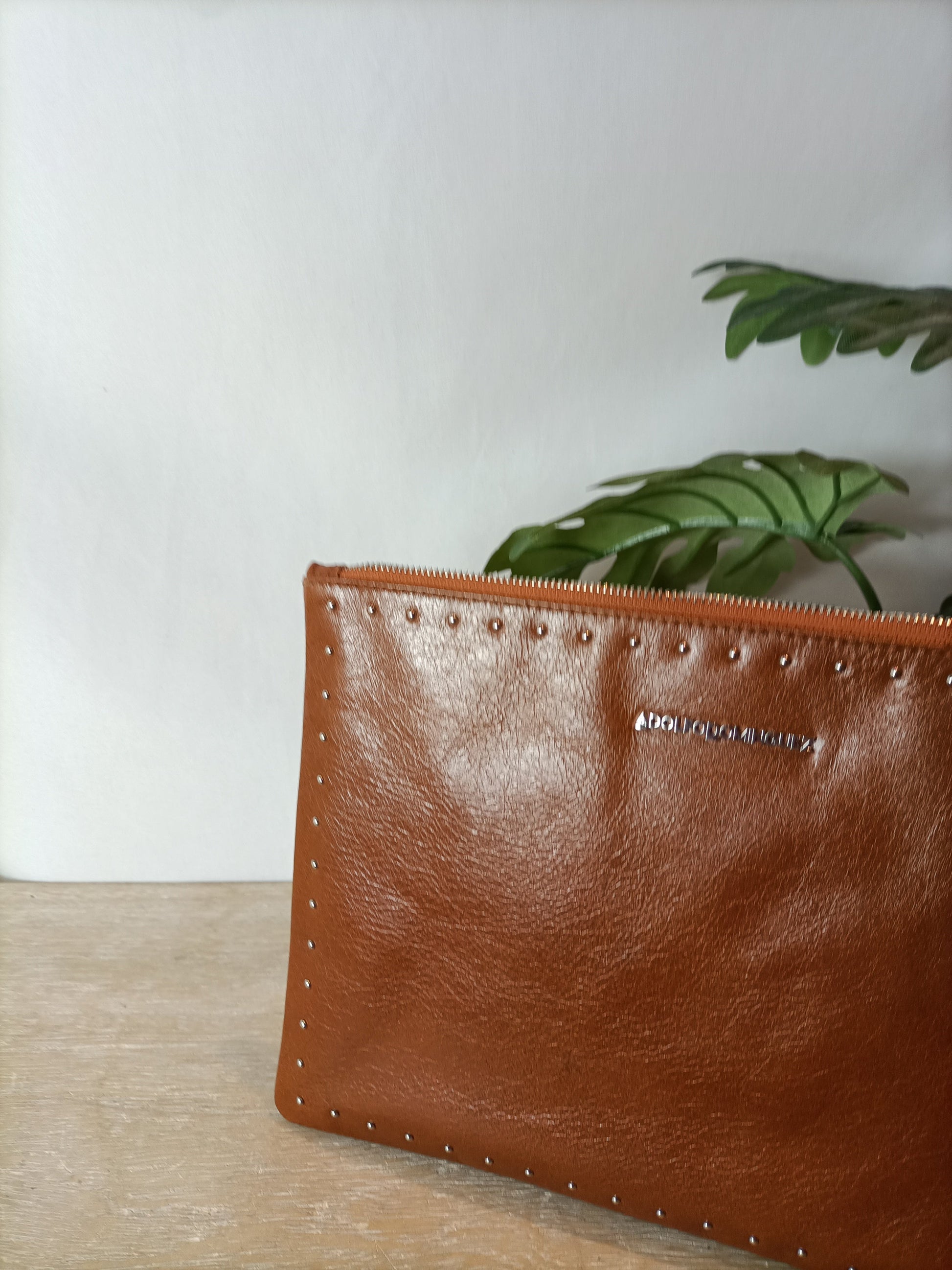 ADOLFO DOMINGUEZ. Cartera piel tachuelas