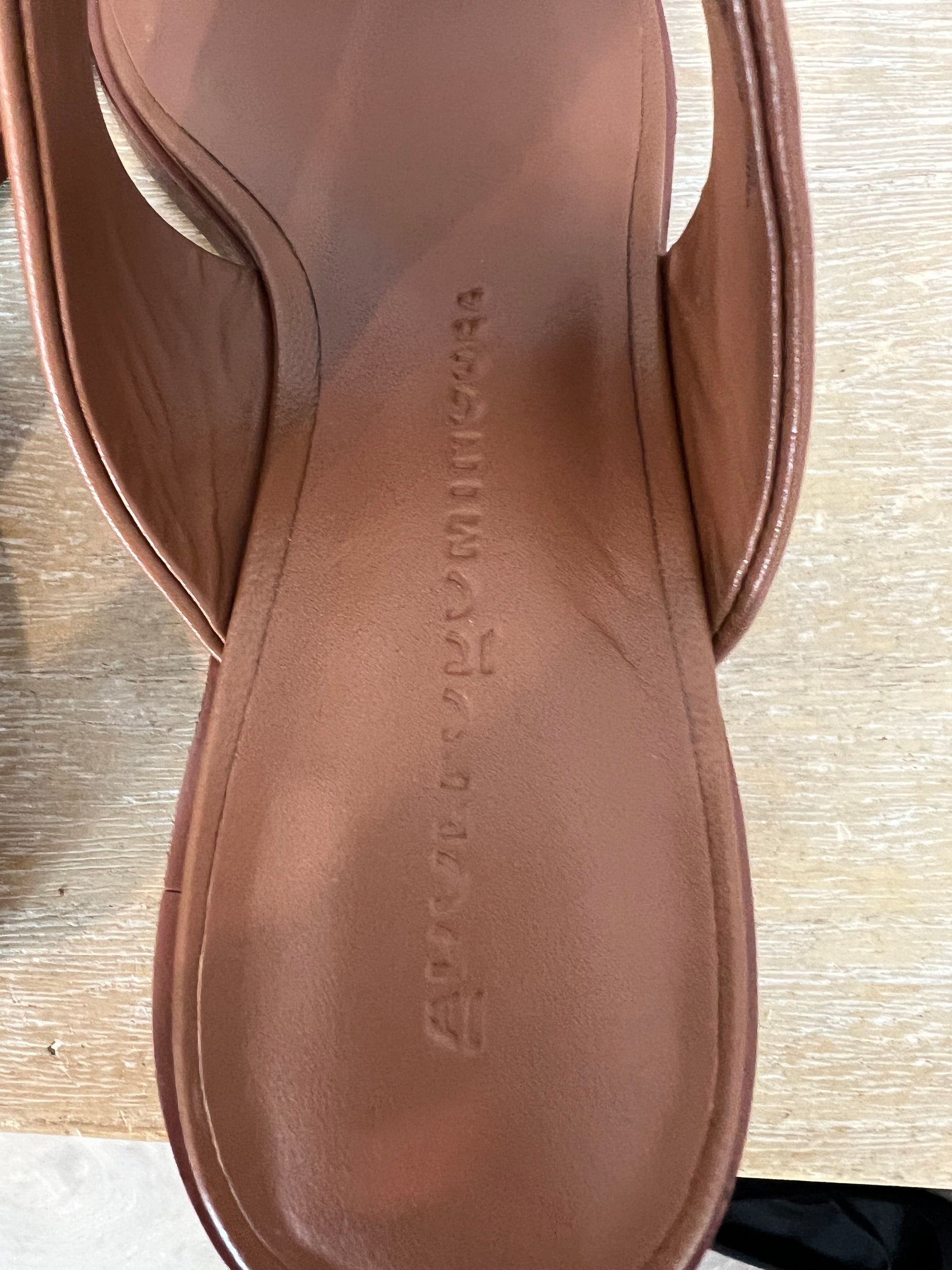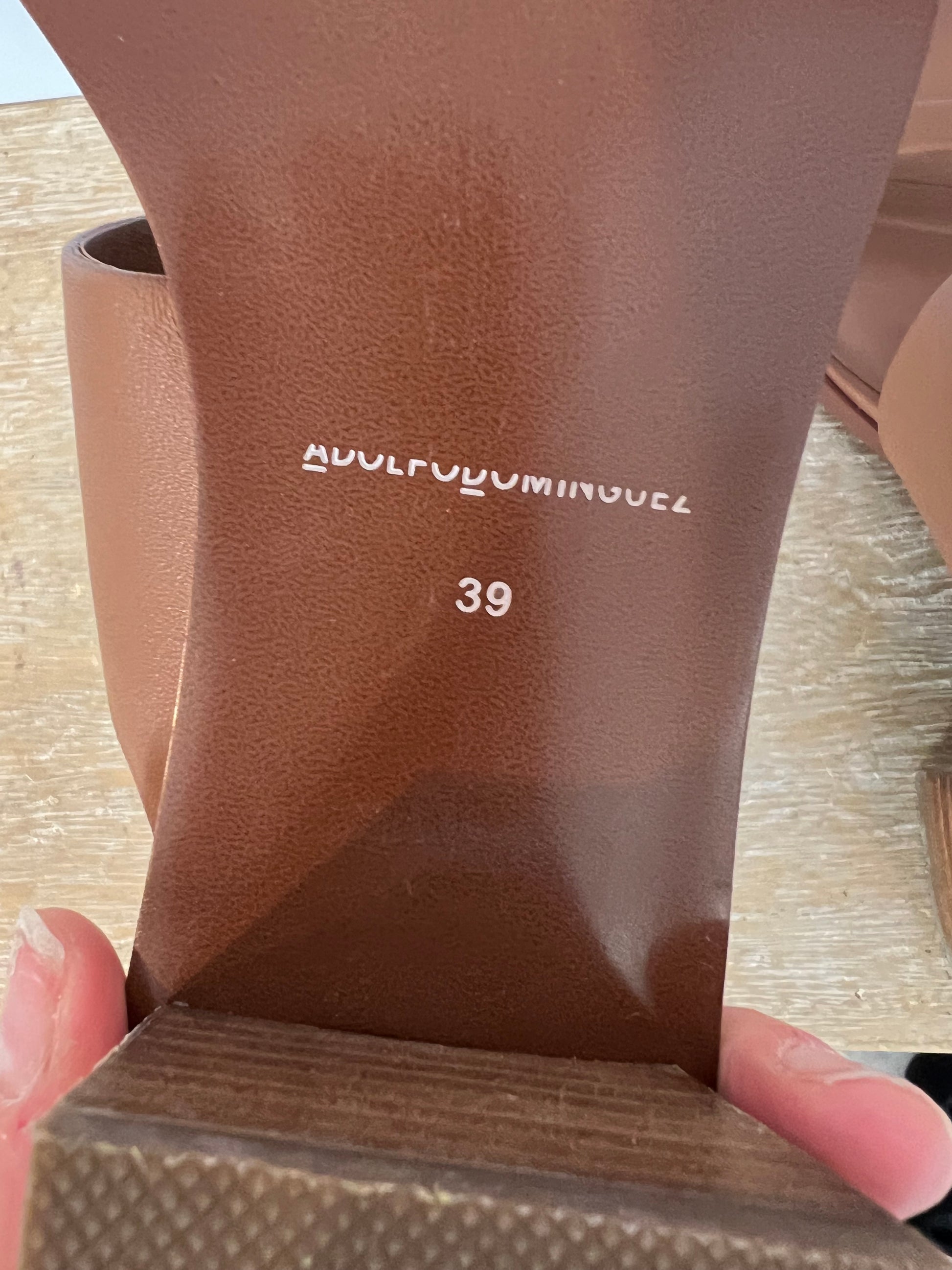 ADOLFO DOMINGUEZ. Sandalia marrón tacón medio. T 39