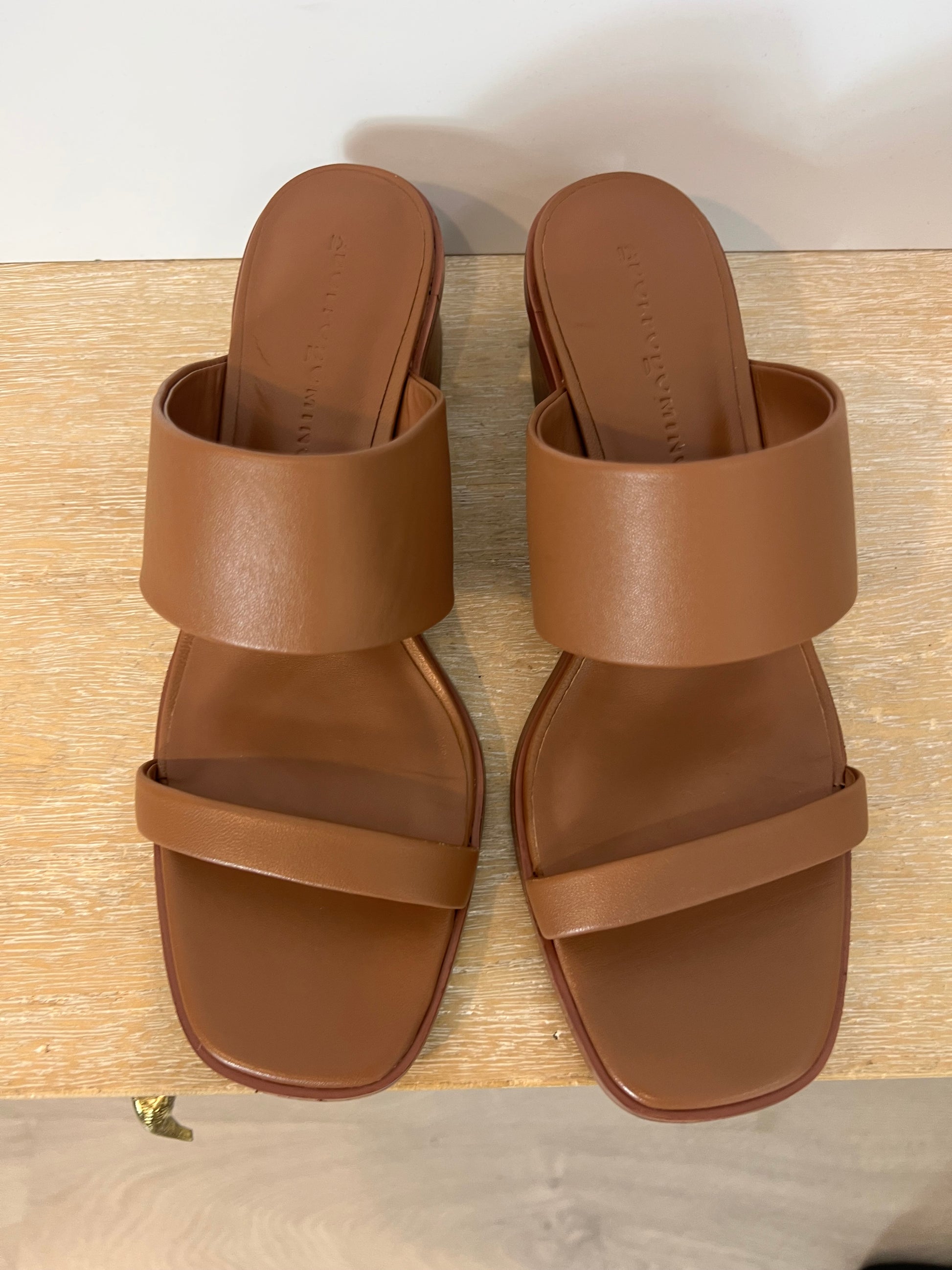 NUEVAS SIN USO. Sandalia piel marrón tacón medio 5cm