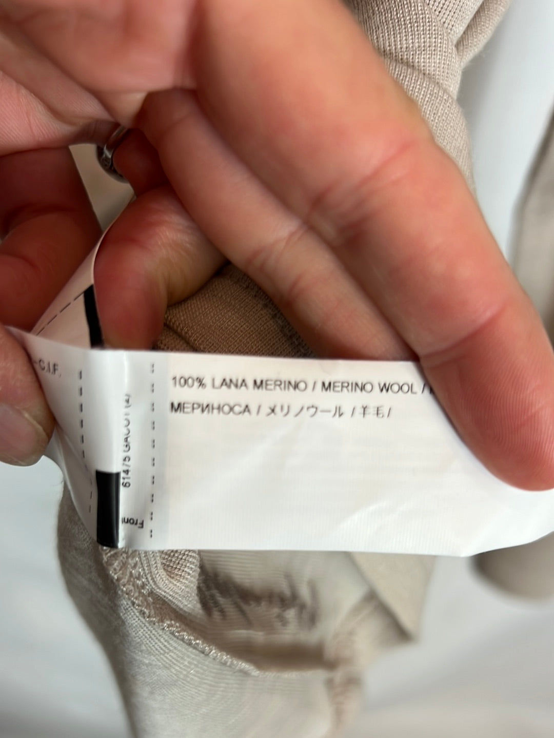 Top beige lana cuello vuelto. largo 66cm, hombros 40cm