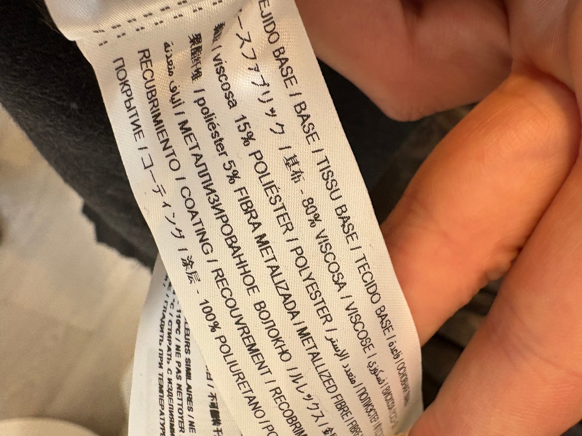 Espalda 42 cm, largo 117 cm. Cintura semi elástica. Talla como una M/l/falta cinturón