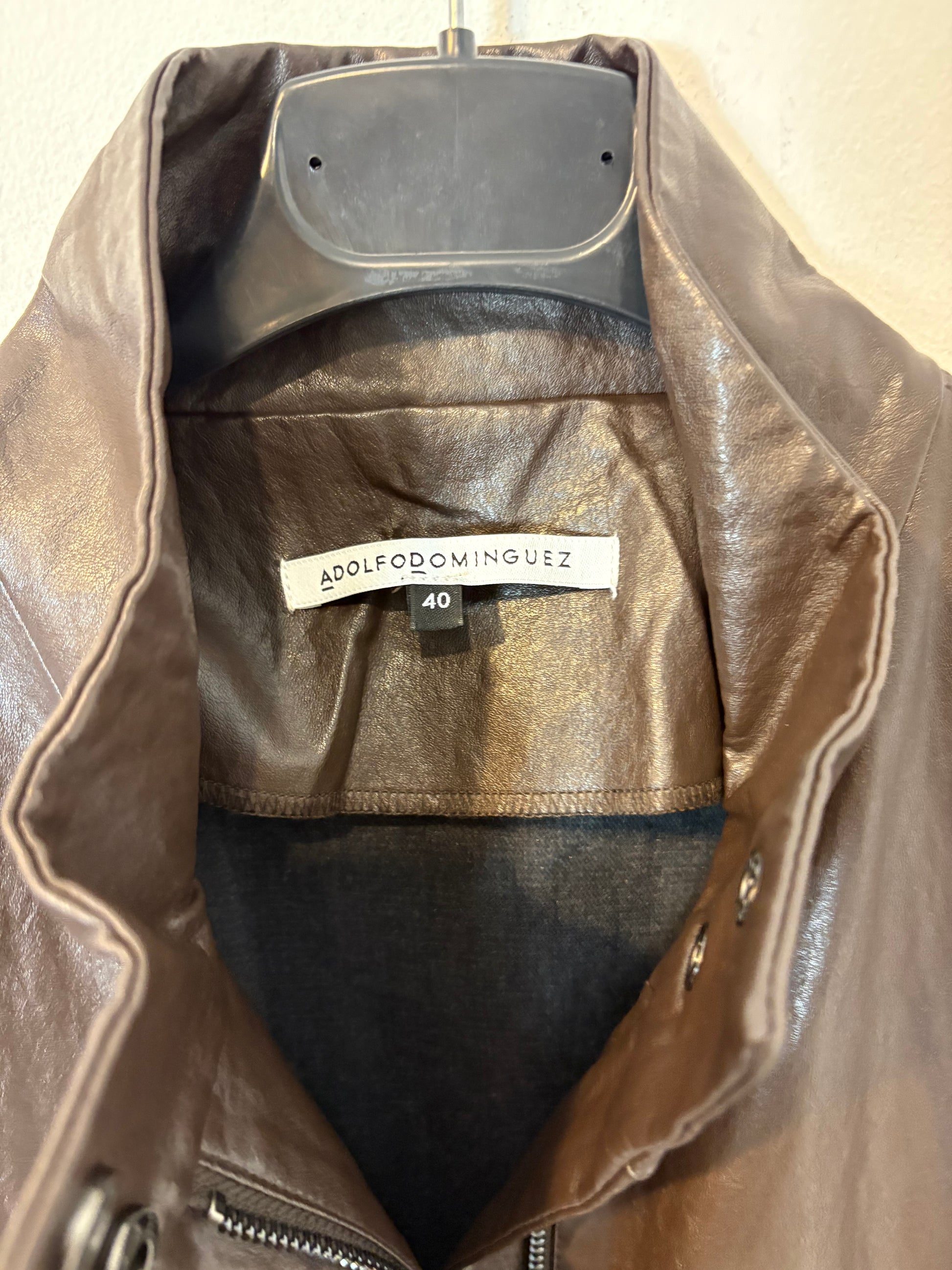 ADOLFO DOMINGUEZ. Vestido midi marrón efecto piel