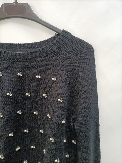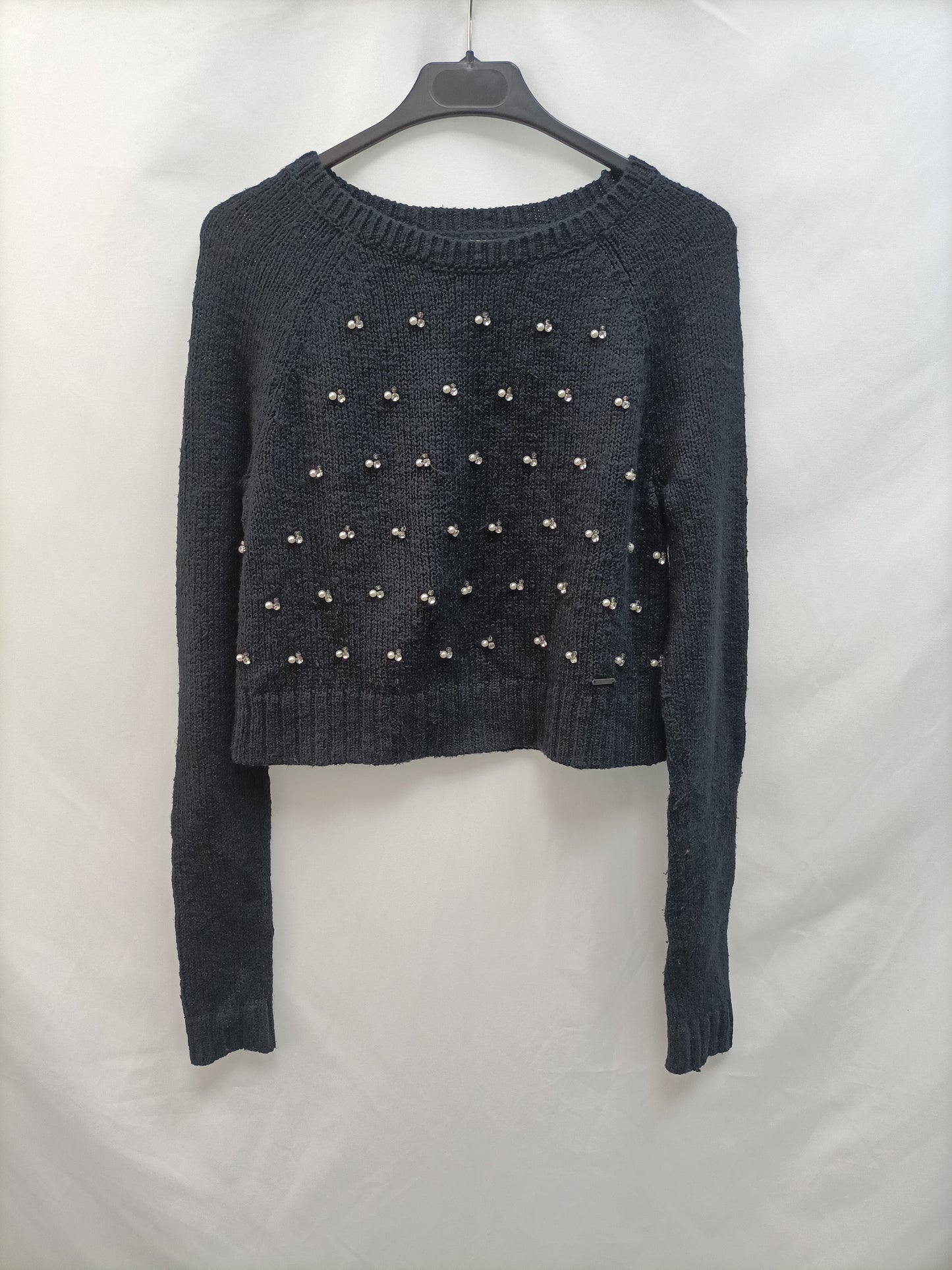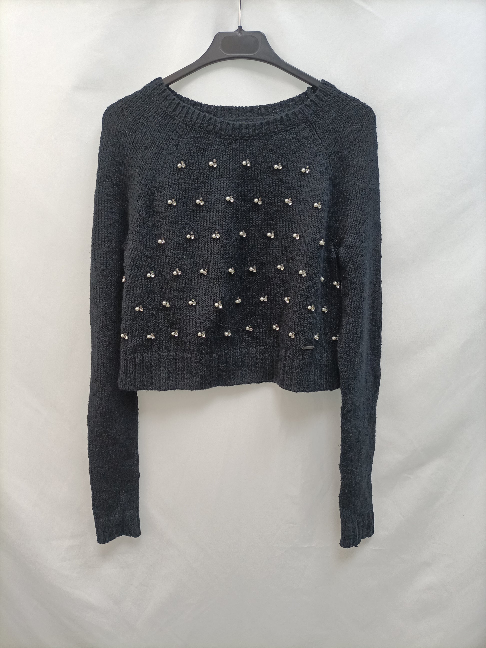 ABERCROMBIE. Jersey negro corto con perlas T.s